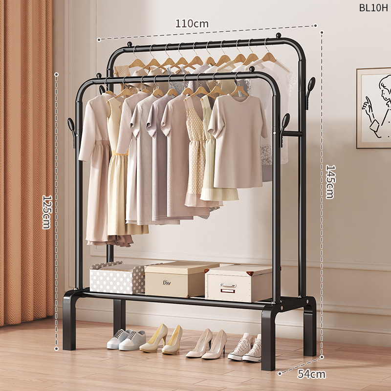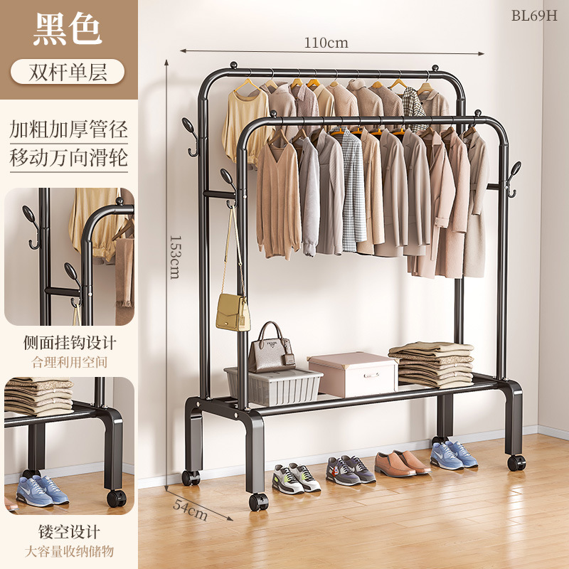 [double-layer double rod 110 black]-four hooks + universal wheel bold type