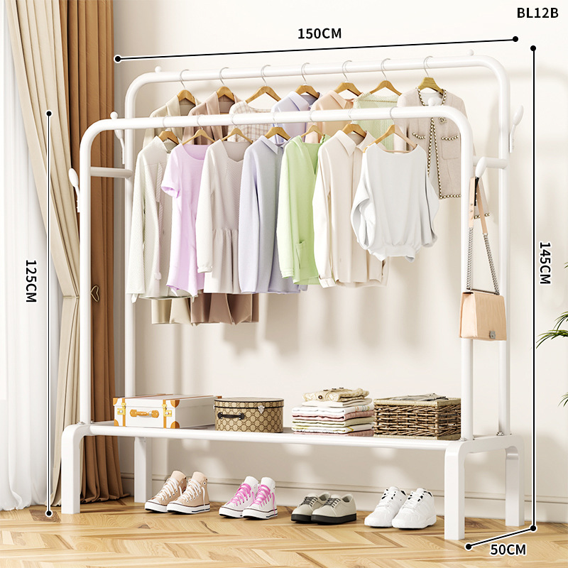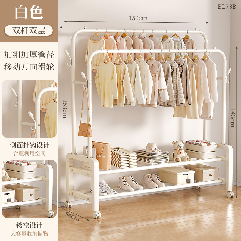 [double-layer double rod 150 white]-four hooks + universal wheel bold type