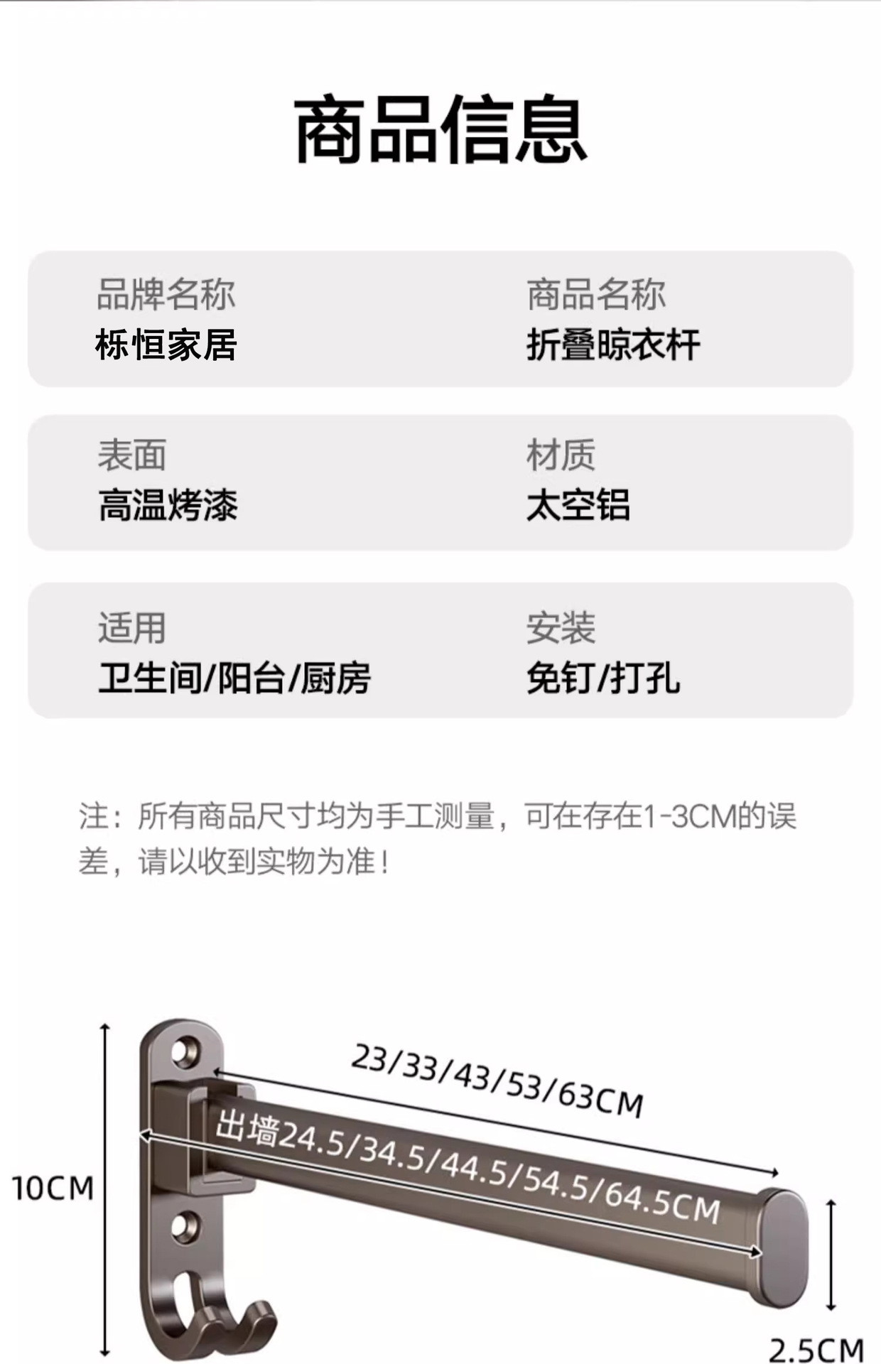 white square pole length 63cm (wall distance cm)