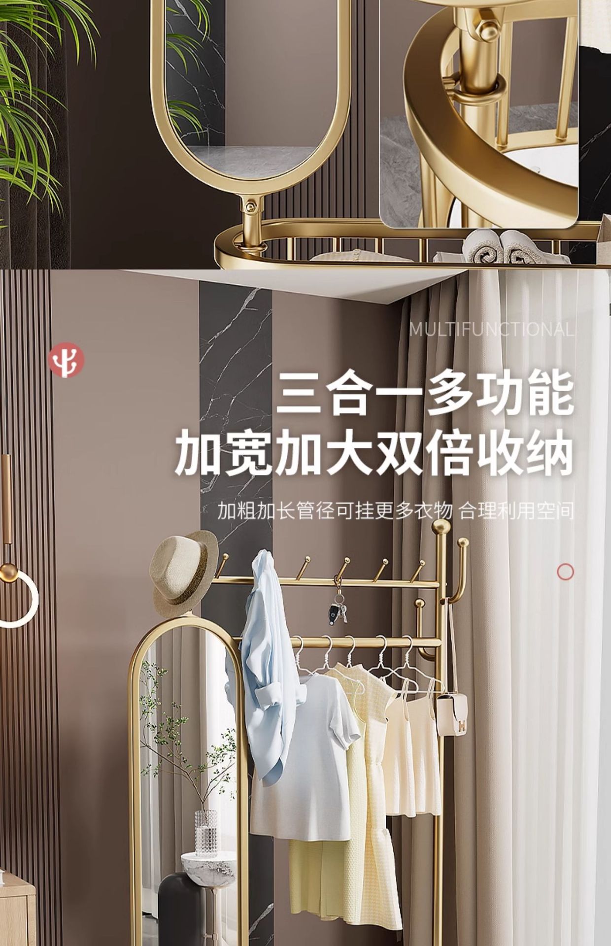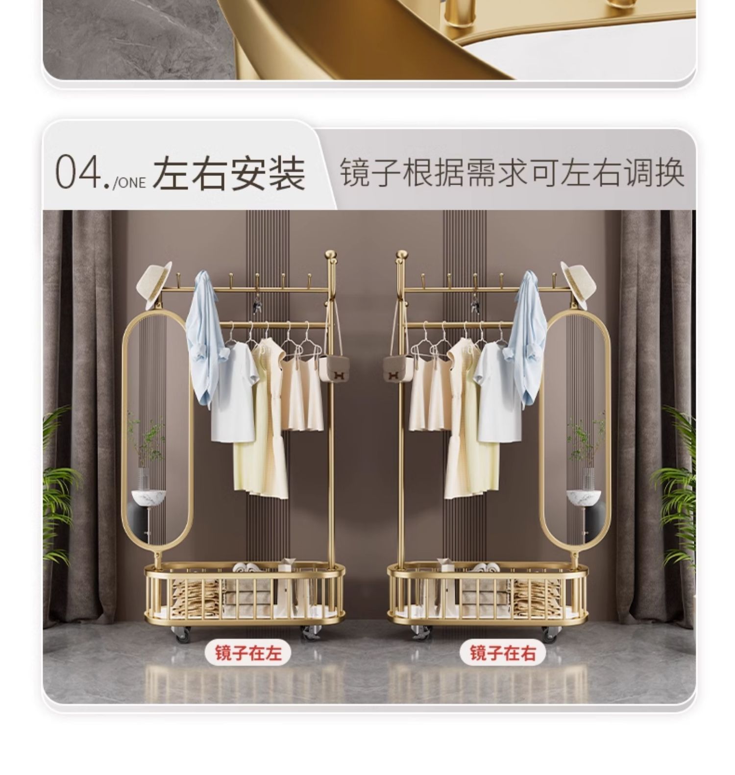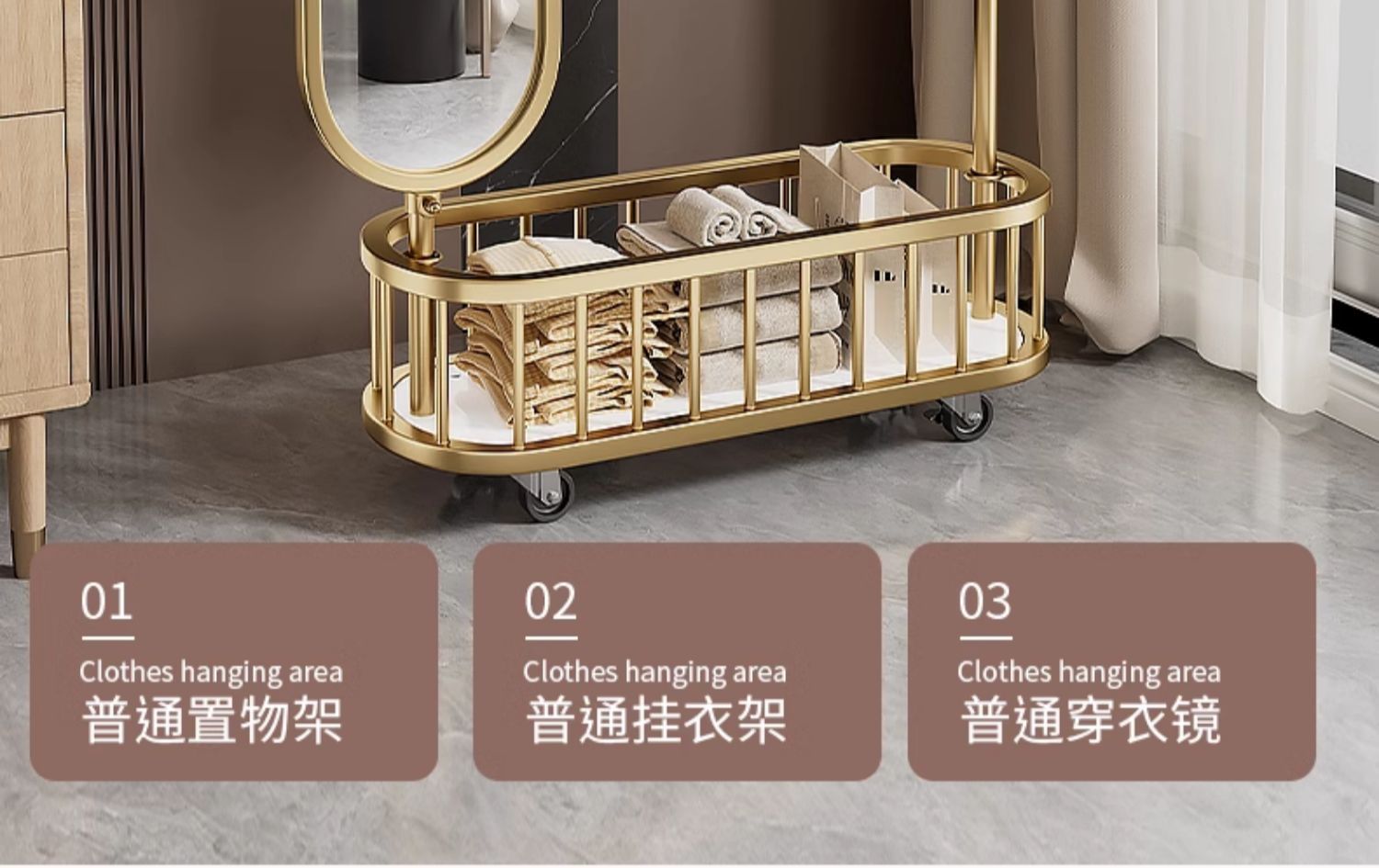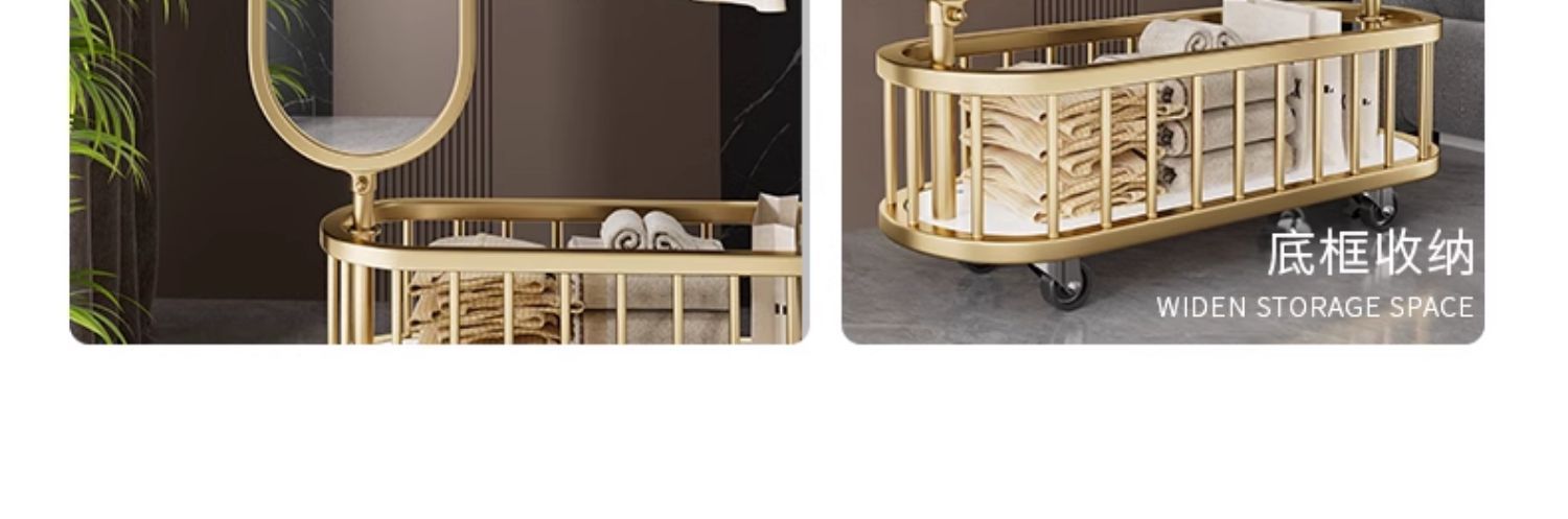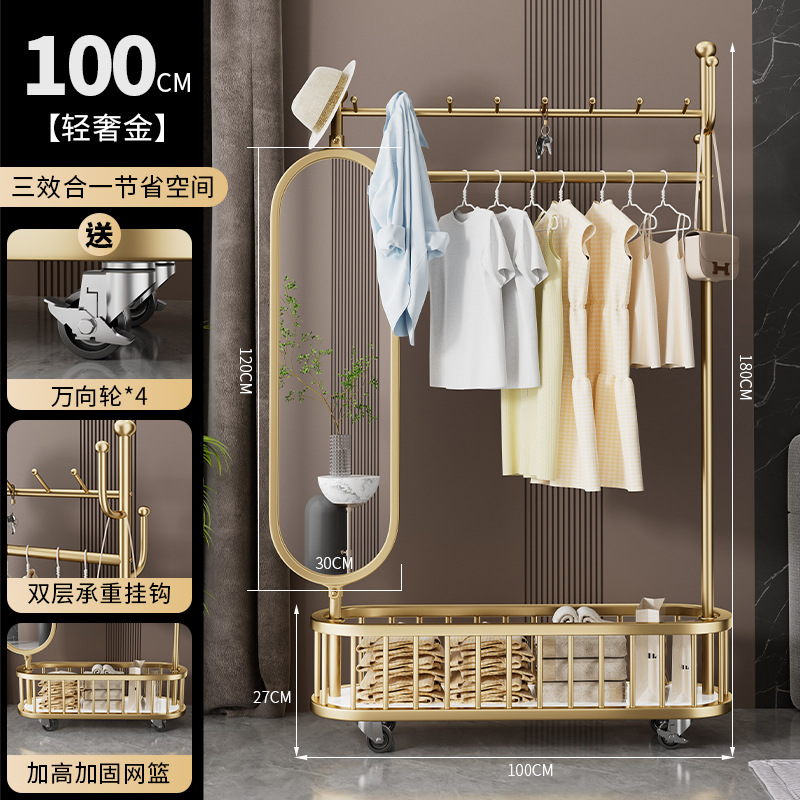 thick large light luxury gold 100cm [rotatable mirror-4 hooks storage large mesh basket-universal wheel]]