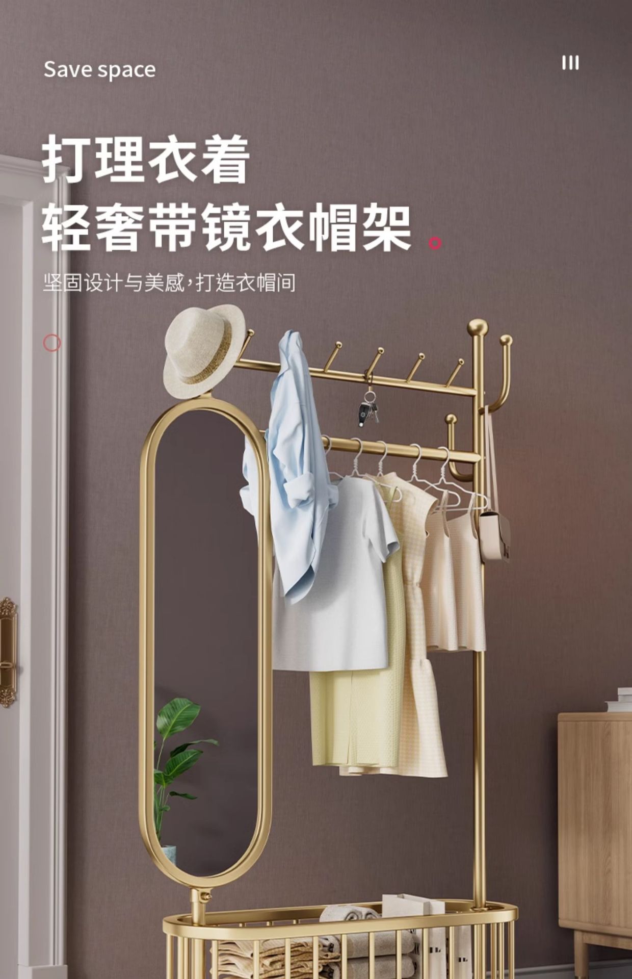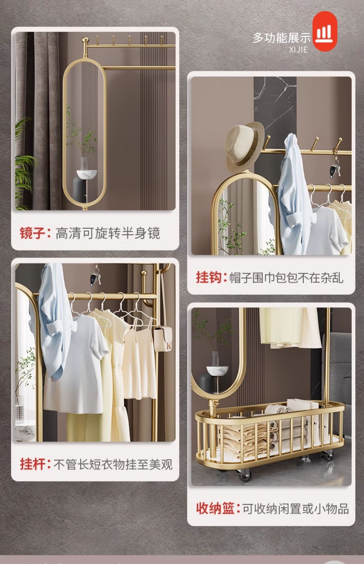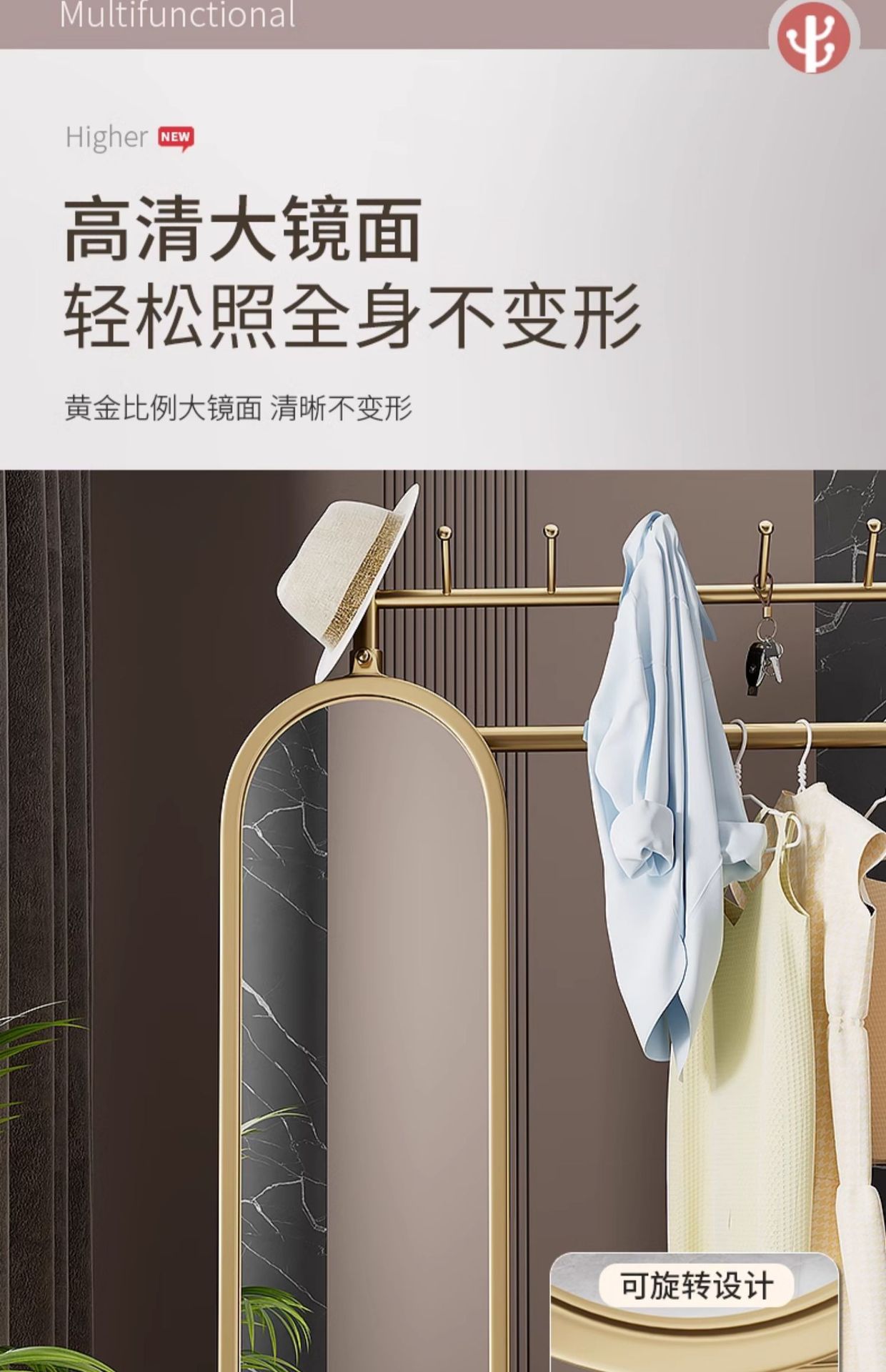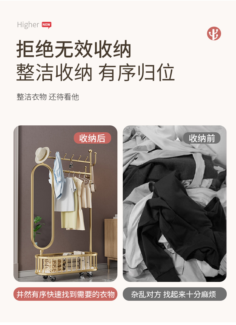 thick large light luxury gold 100cm [rotatable mirror-4 hooks storage large mesh basket-universal wheel]]