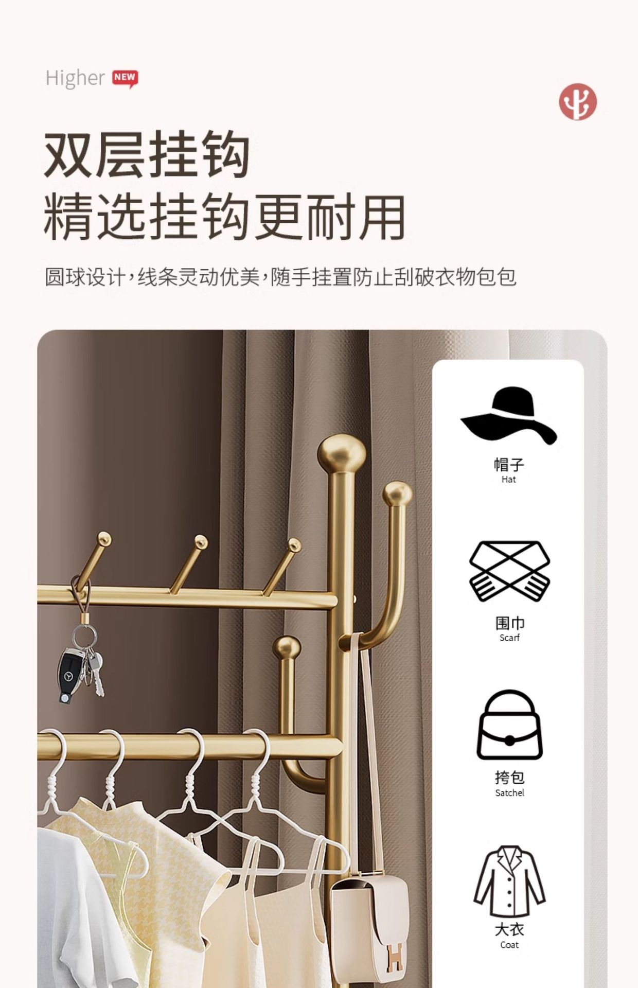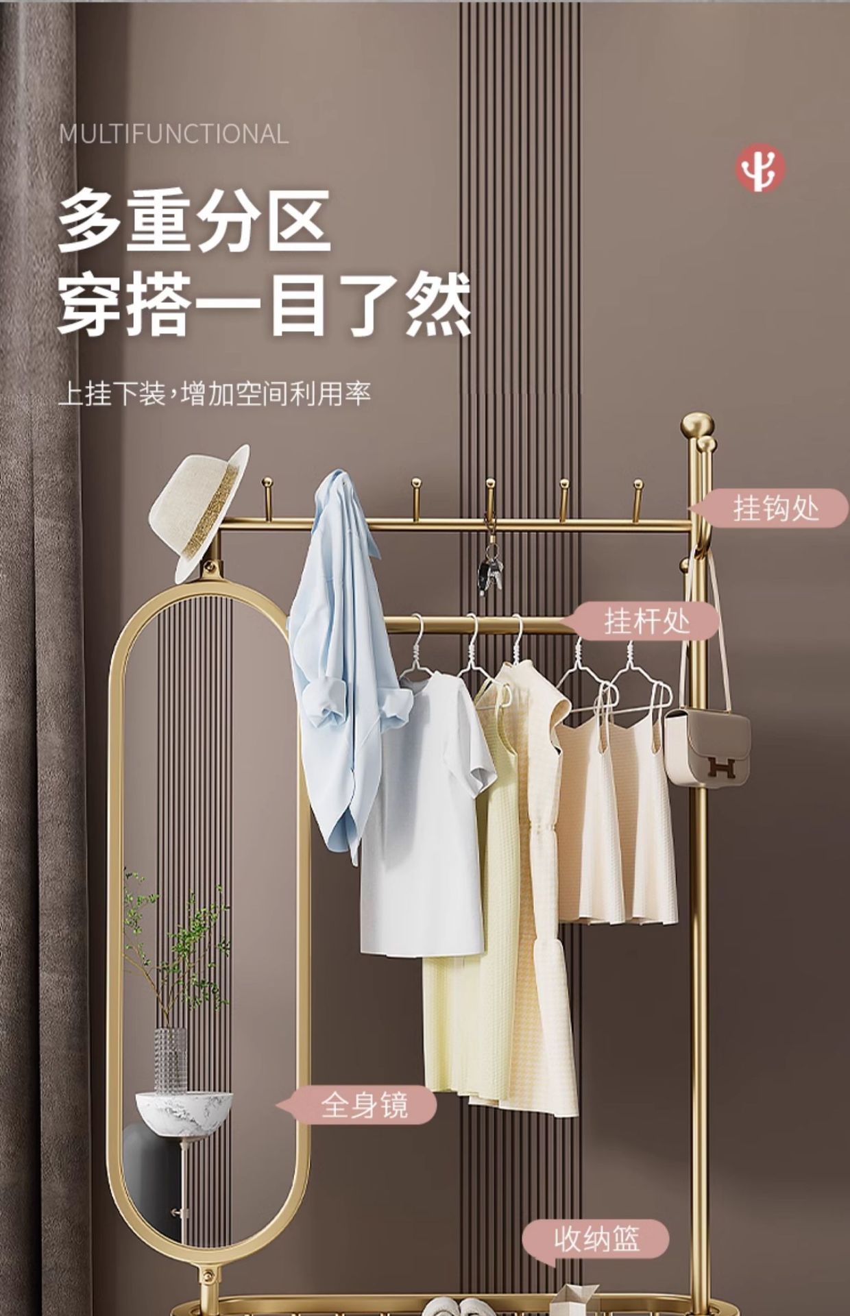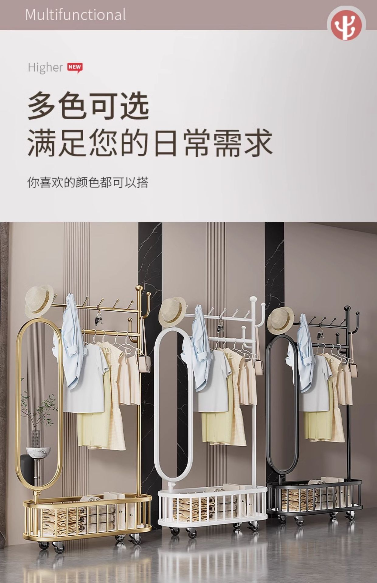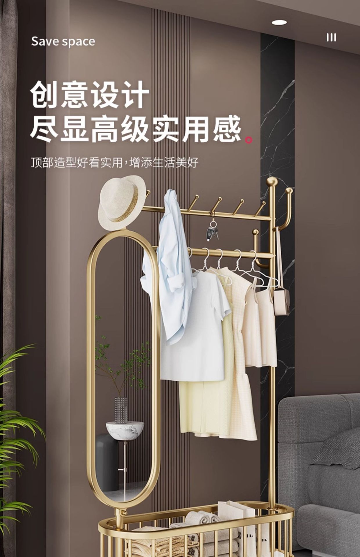 thick large light luxury gold 100cm [rotatable mirror-4 hooks storage large mesh basket-universal wheel]]