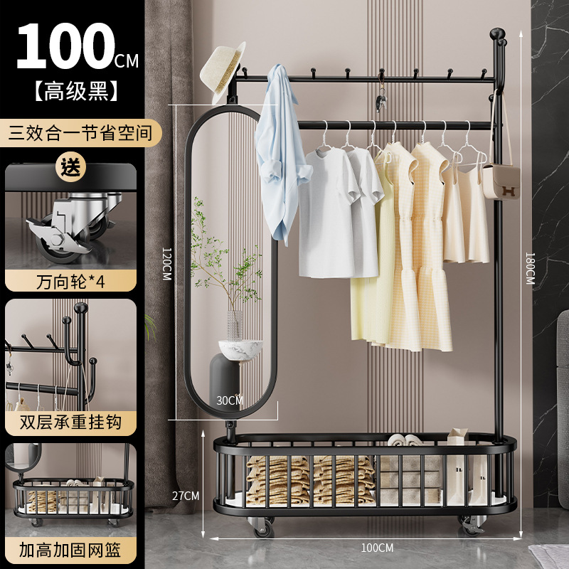 thick large obsidian black 100cm [rotatable mirror-4 hooks storage large mesh basket-universal wheel]]