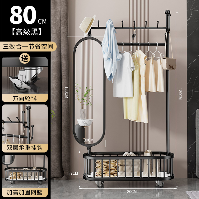 thickened medium size obsidian black 80cm [rotatable mirror-4 hooks storage large mesh basket-universal wheel]]