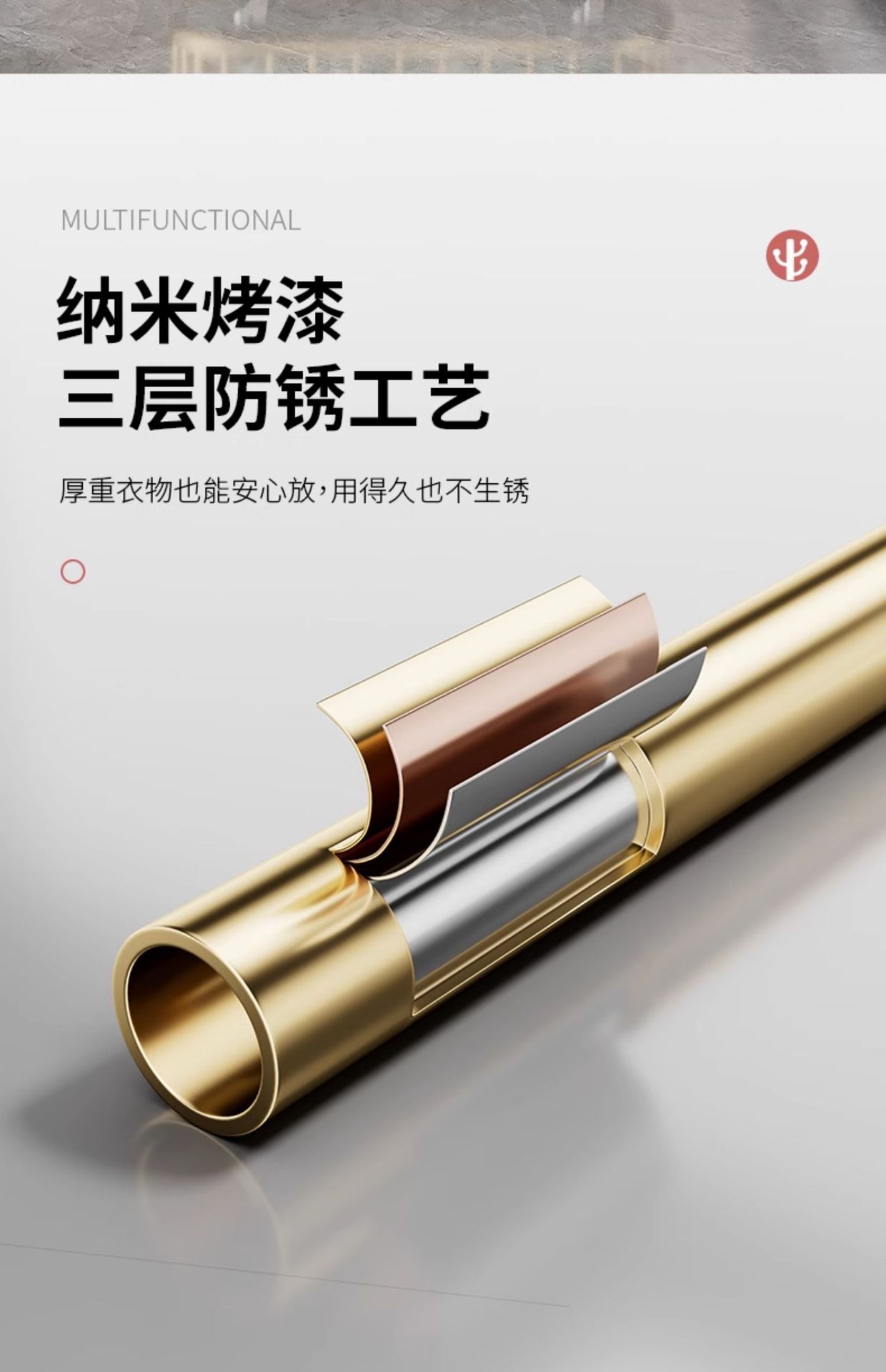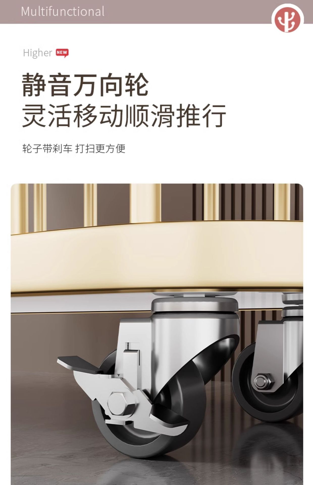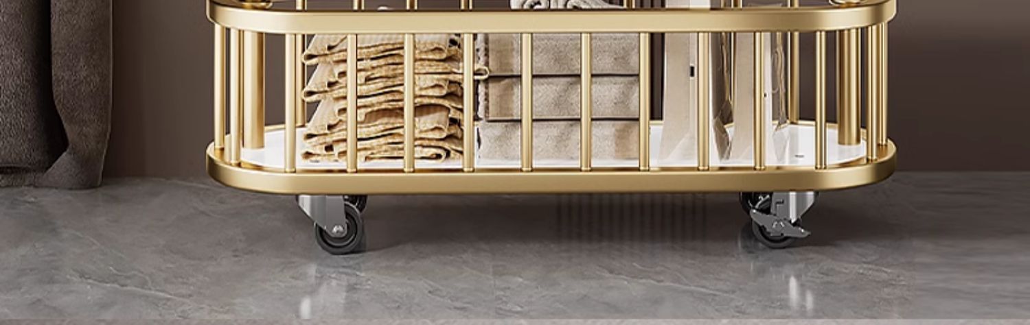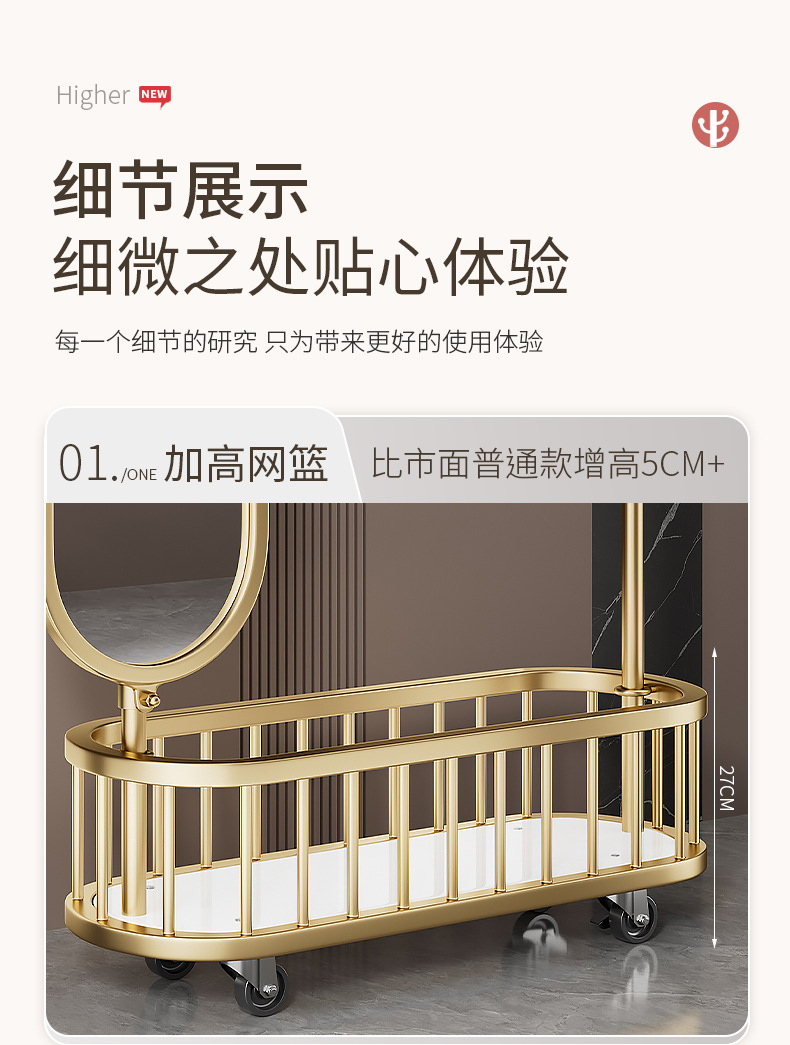 thickened medium size light luxury gold 80cm [rotatable mirror-4 hooks storage large mesh basket-universal wheel]]