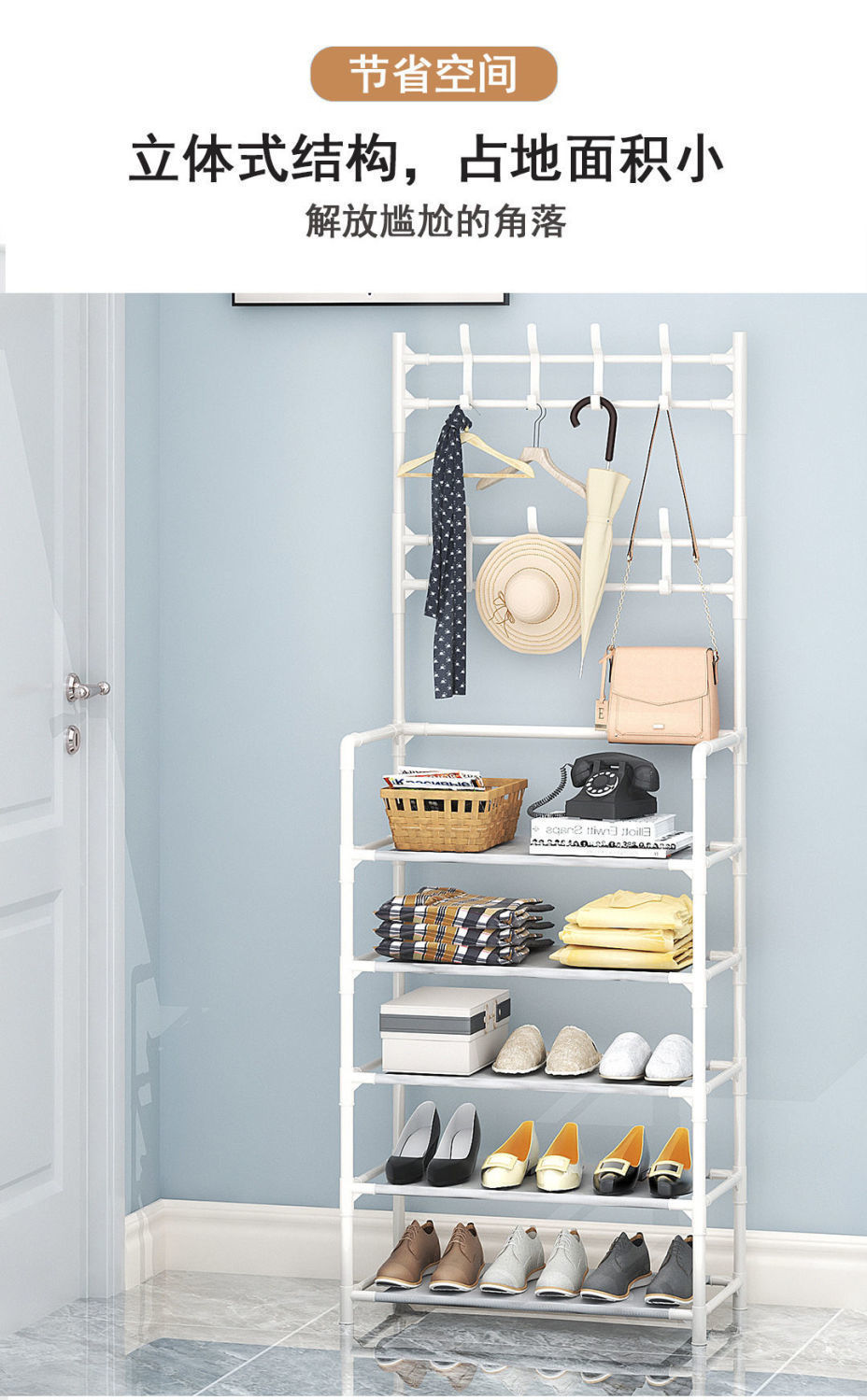 60cm five-layer shoes and hat rack (white)