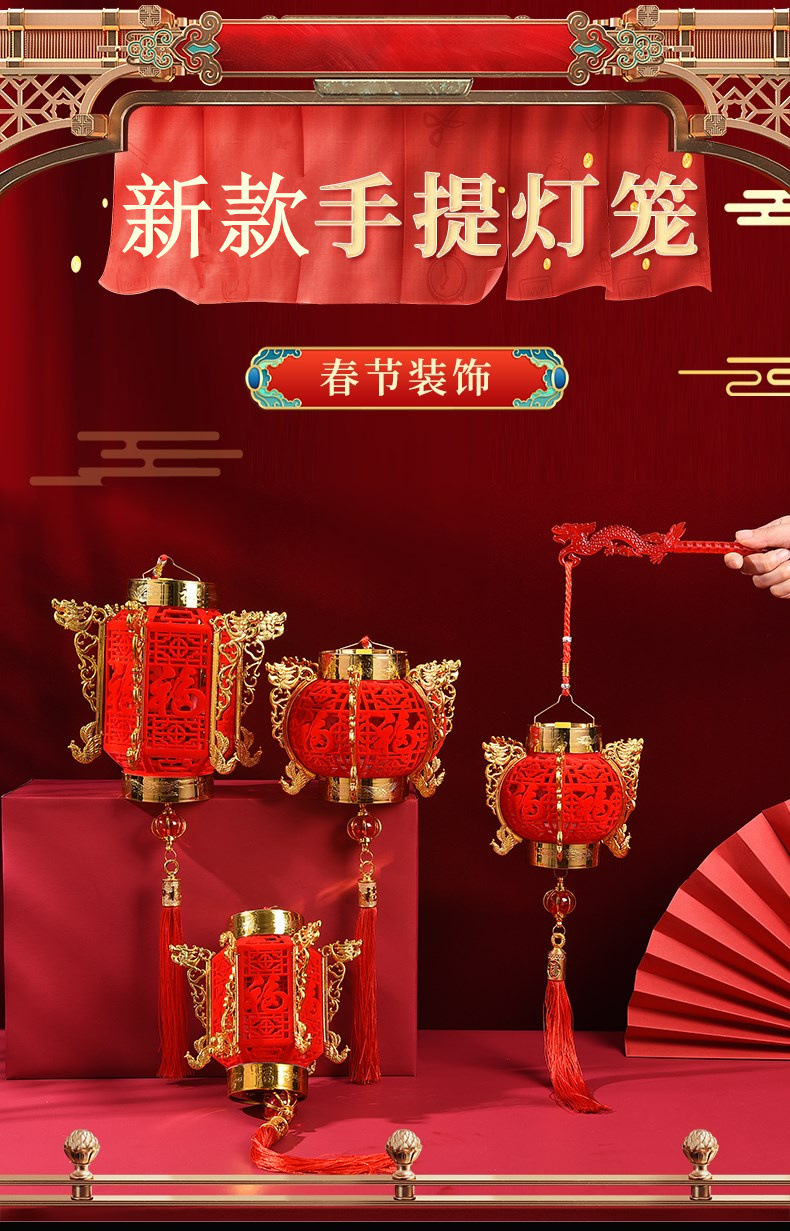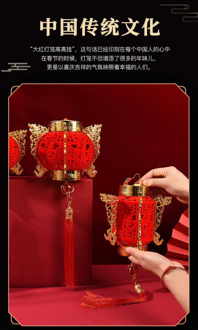 red fu-character lamp [small size]-with light and lifting rod
