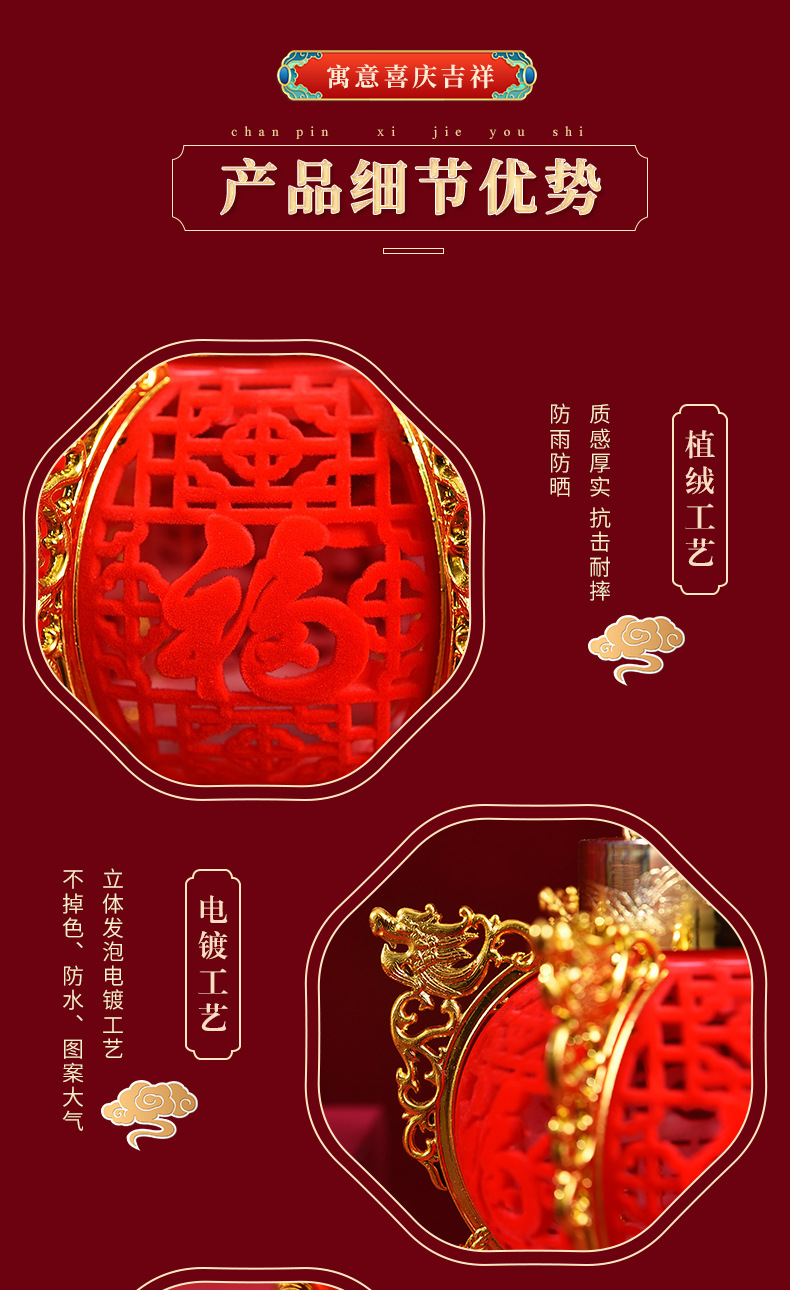 red fu-character lamp [large size]-with light and lifting rod