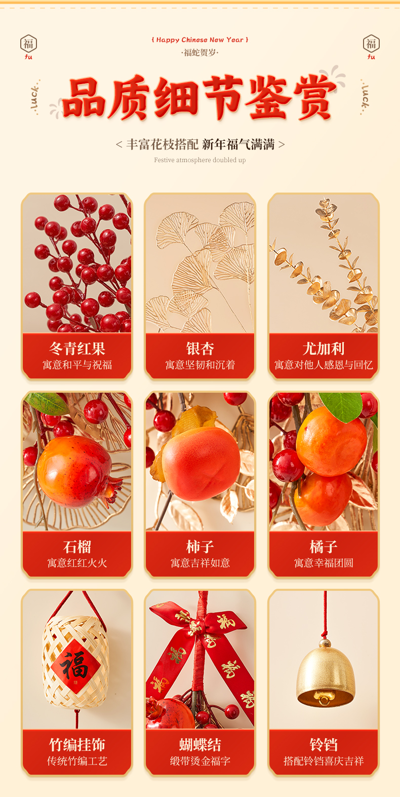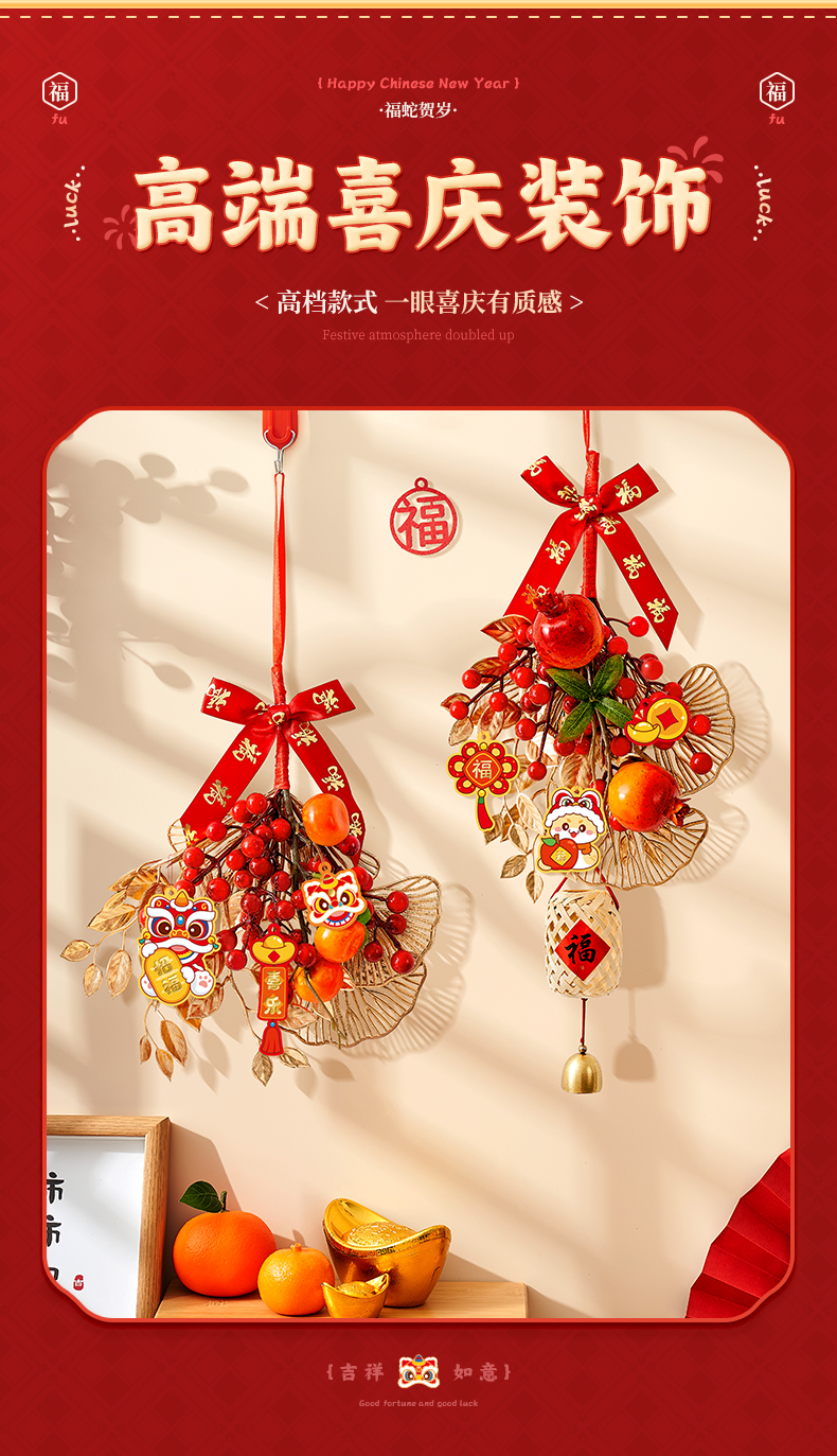 d2-big persimmon chinese hawthorn pendant + cute snake new year tag [gift hook]]