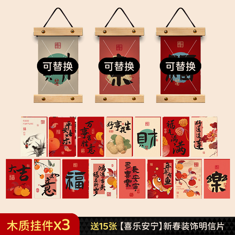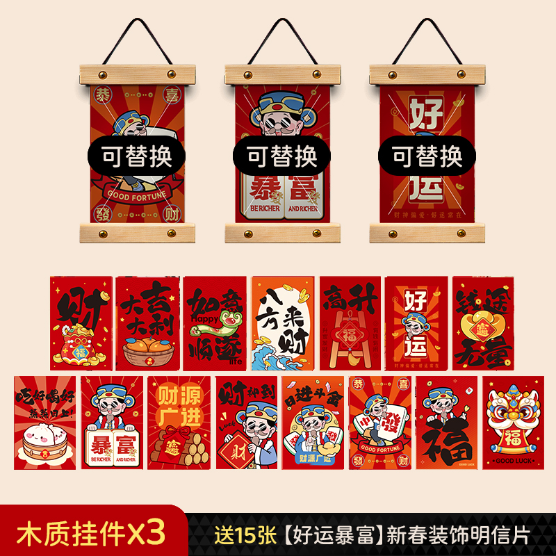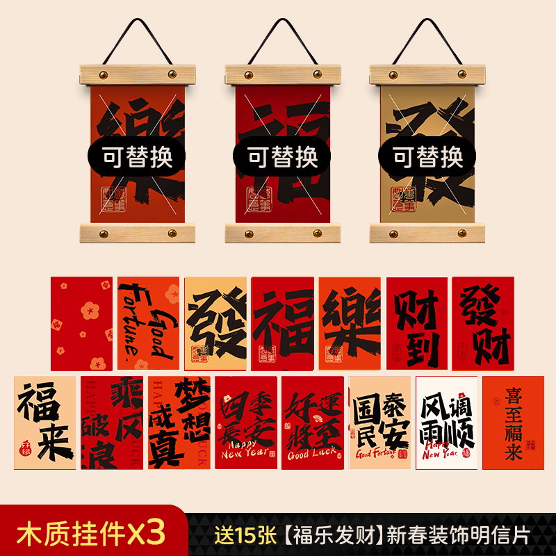 [lucky fortune] 15 pieces (free stickers) + wooden pendant 3 pieces