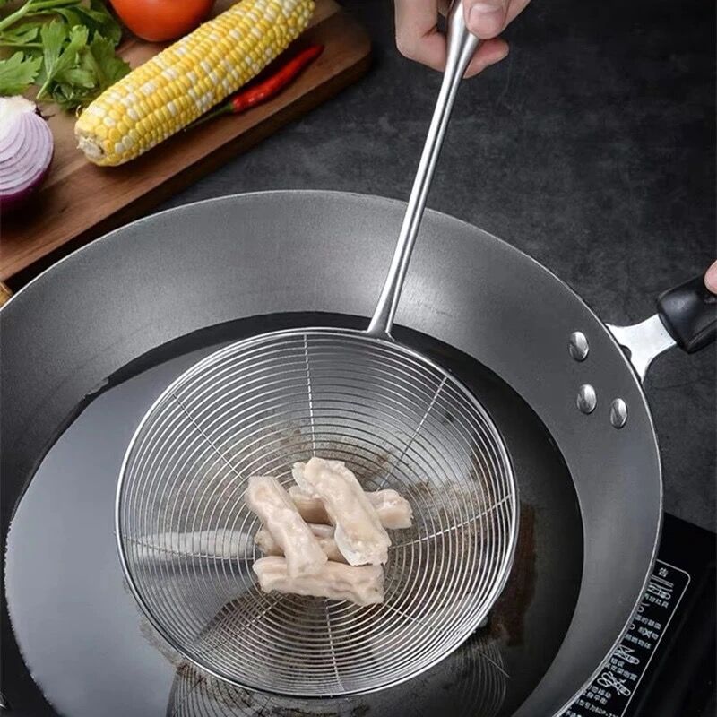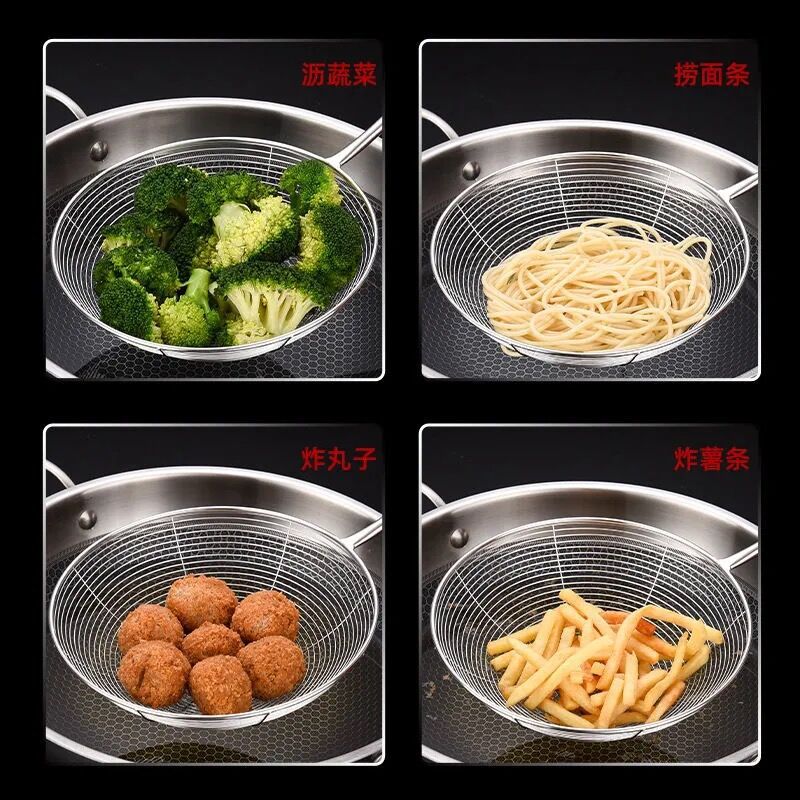 stainless steel round hollow handle hot pot strainer strainer kitchen large strainer thickened screening mesh strainer