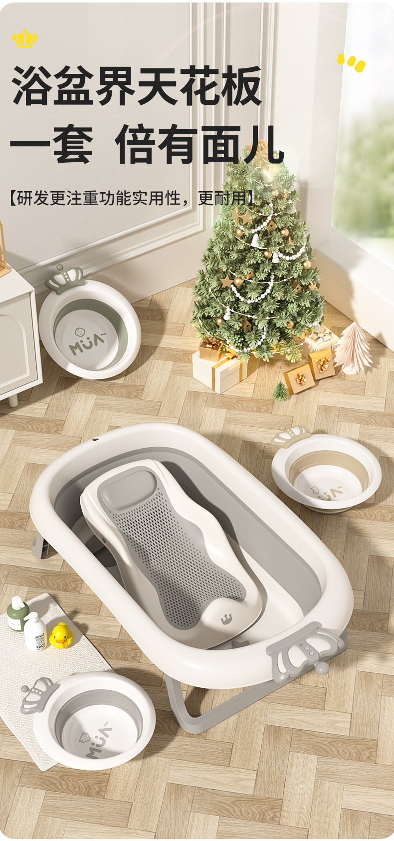 gray bathtub + bath stand + bath mat + net bath sponge +3 washbasin