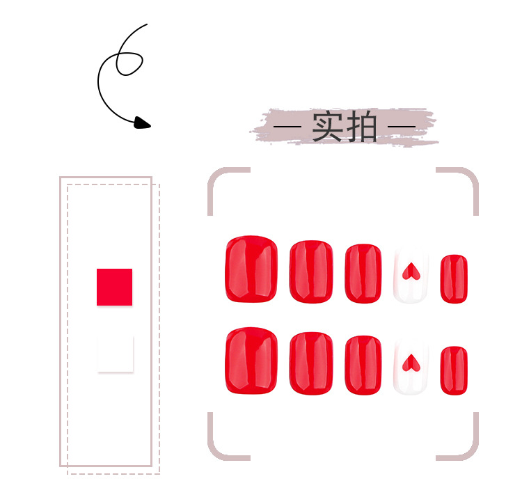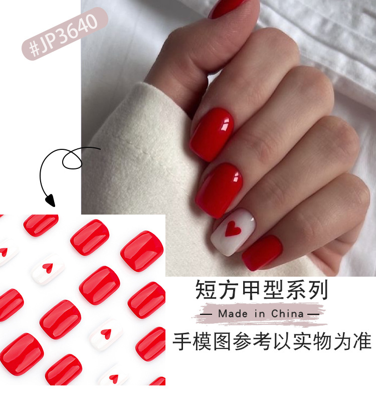 2025 new product best-selling red love valentine's day wear nail solid color manicure fake nails short square nail tip