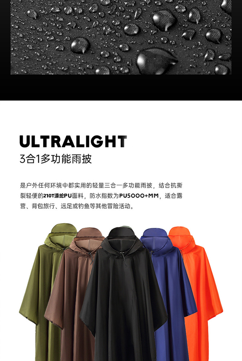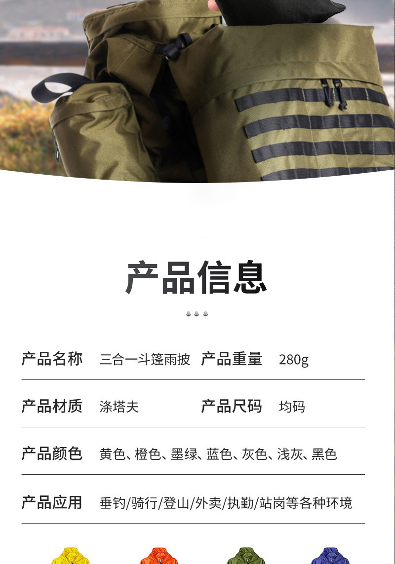 army green lightweight three-in-one cape-style raincoat