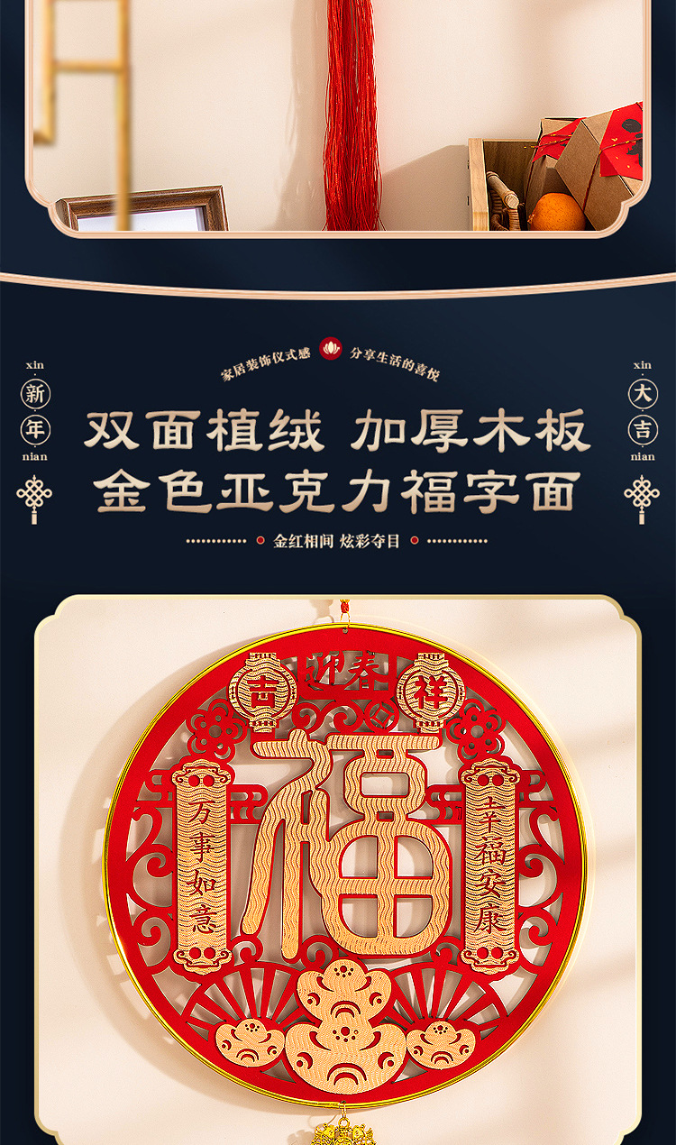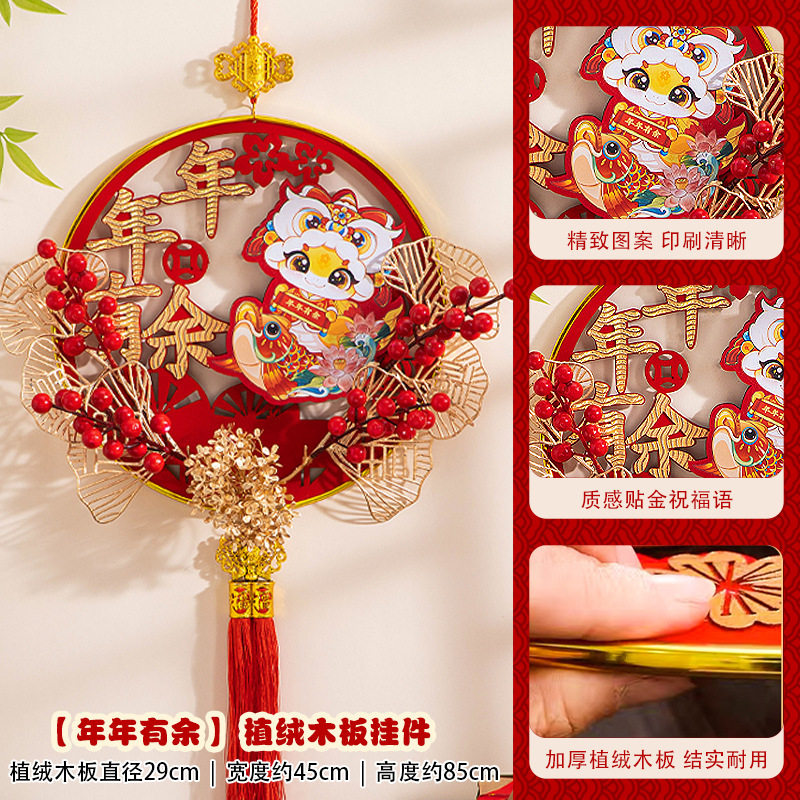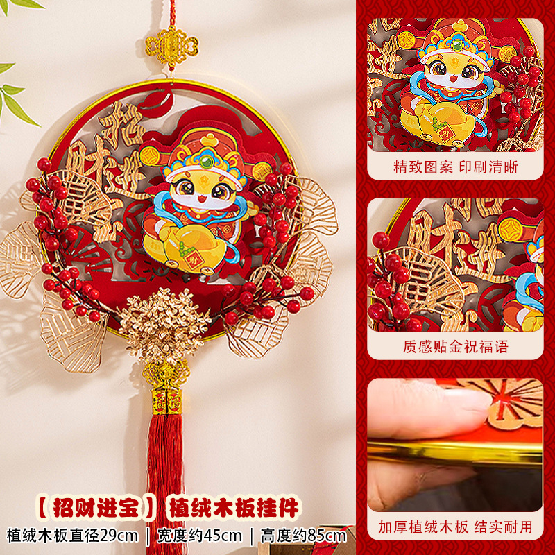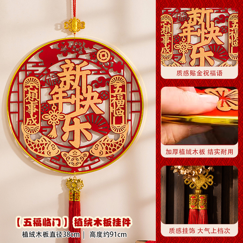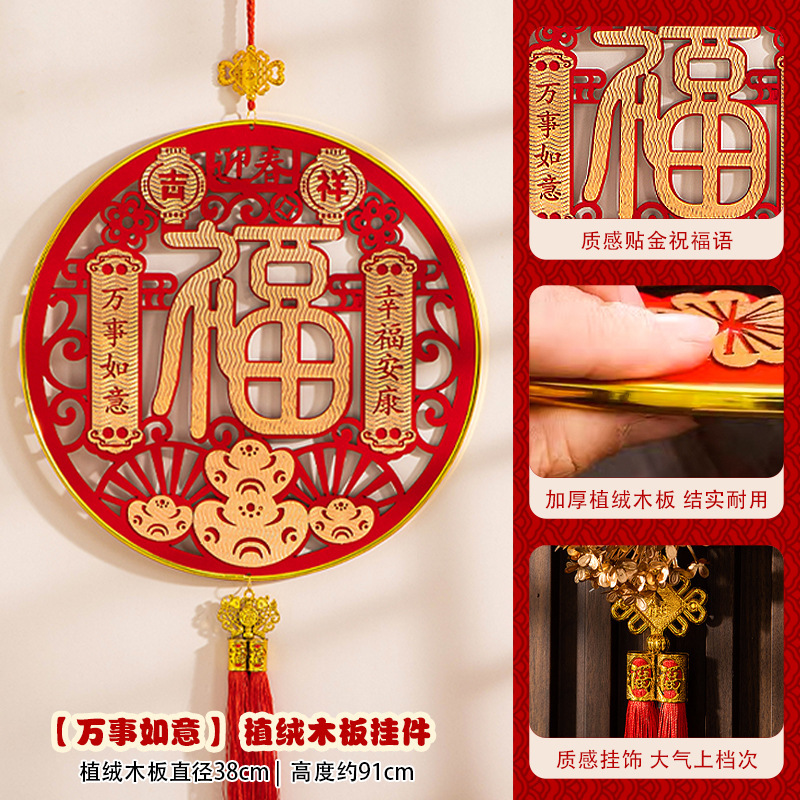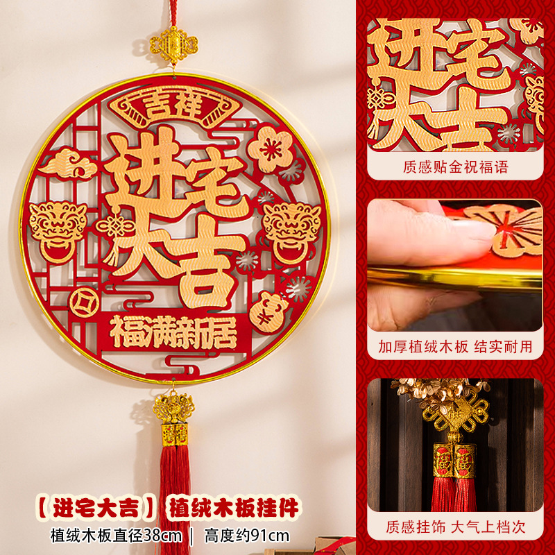 large [auspicious in entering residence] chinese hawthorn flocking wood pendant