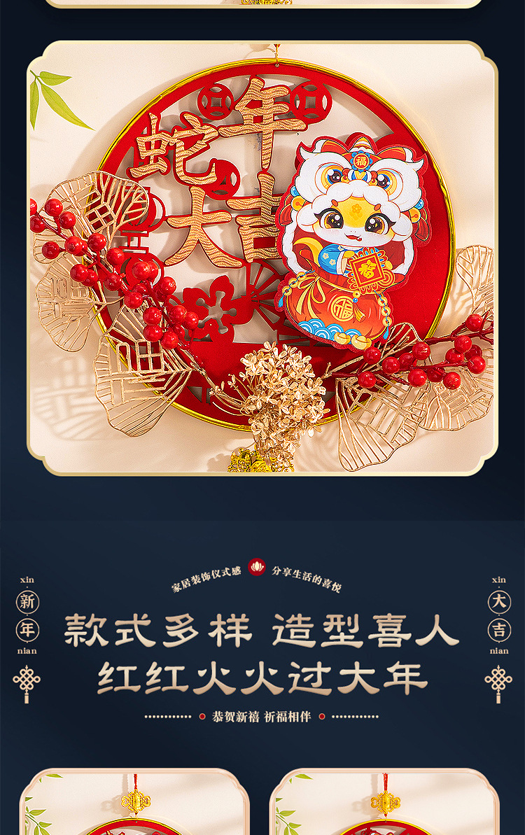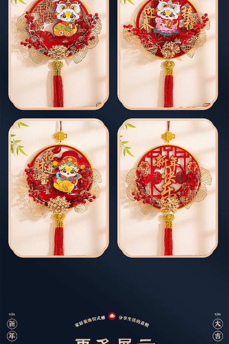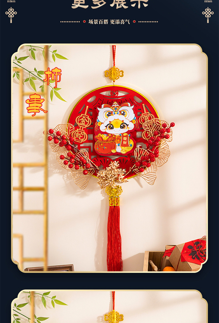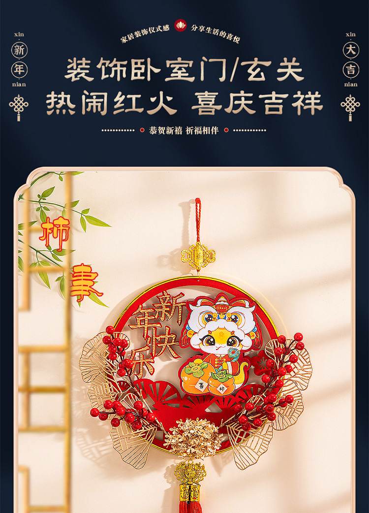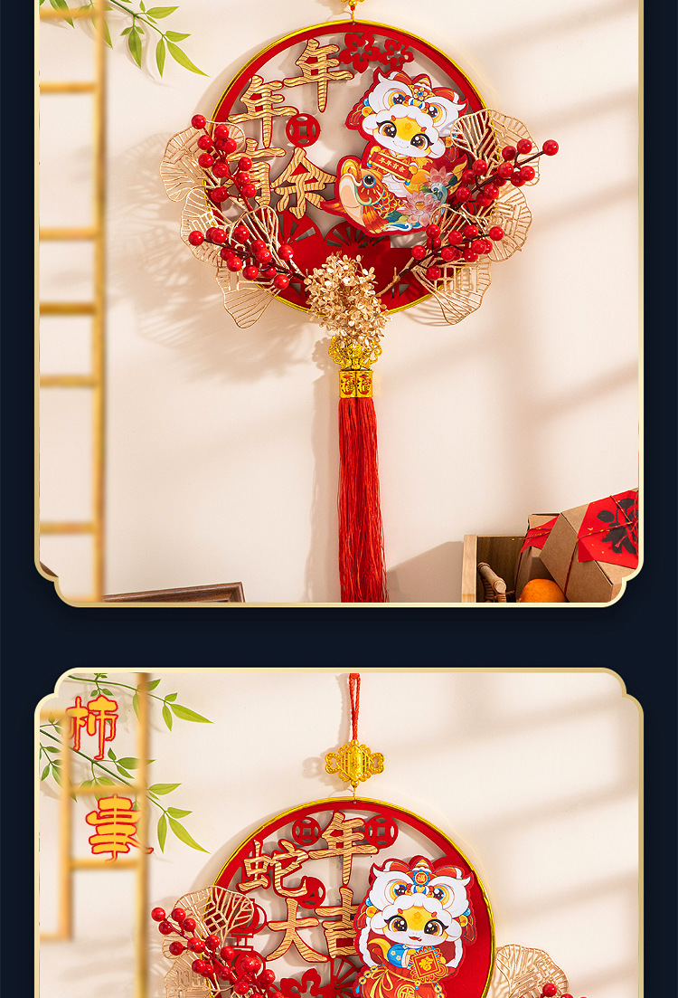 large [auspicious in entering residence] chinese hawthorn flocking wood pendant