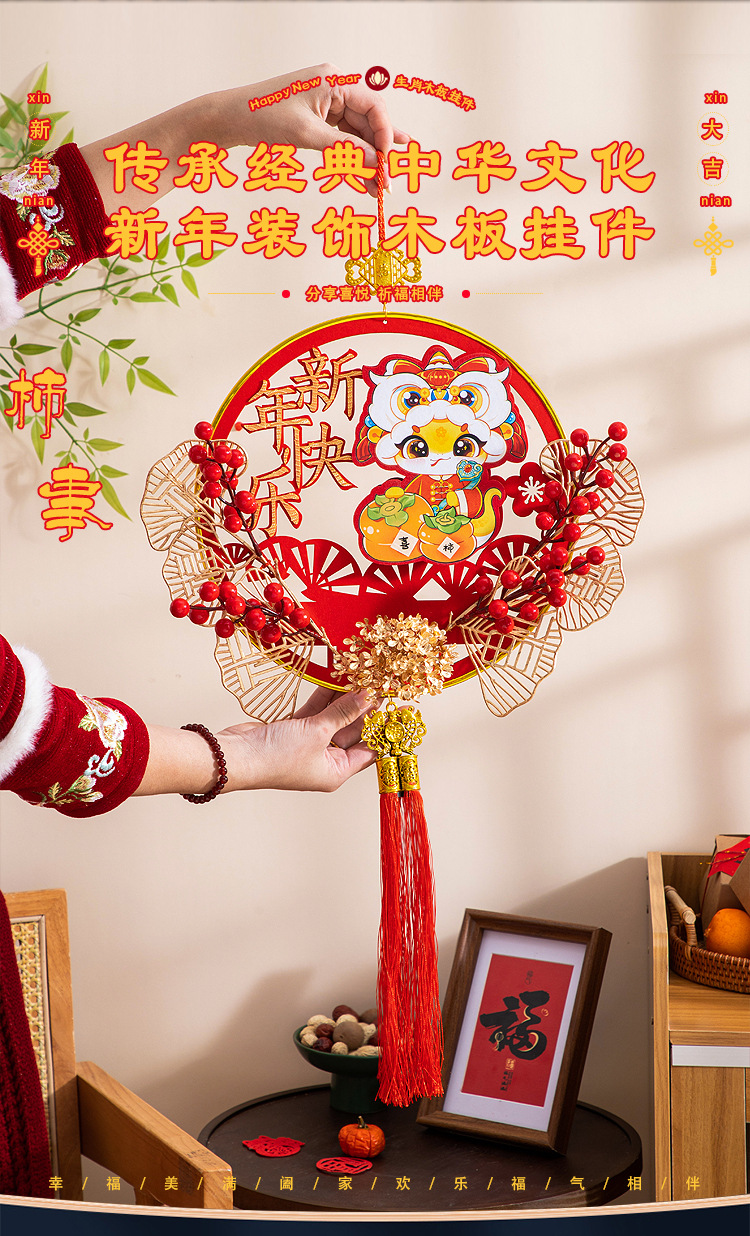 happy new year b- chinese hawthorn flocking wooden pendant