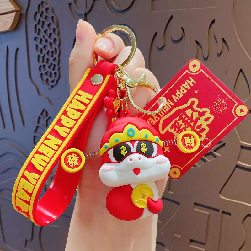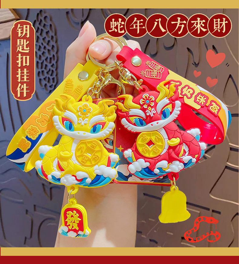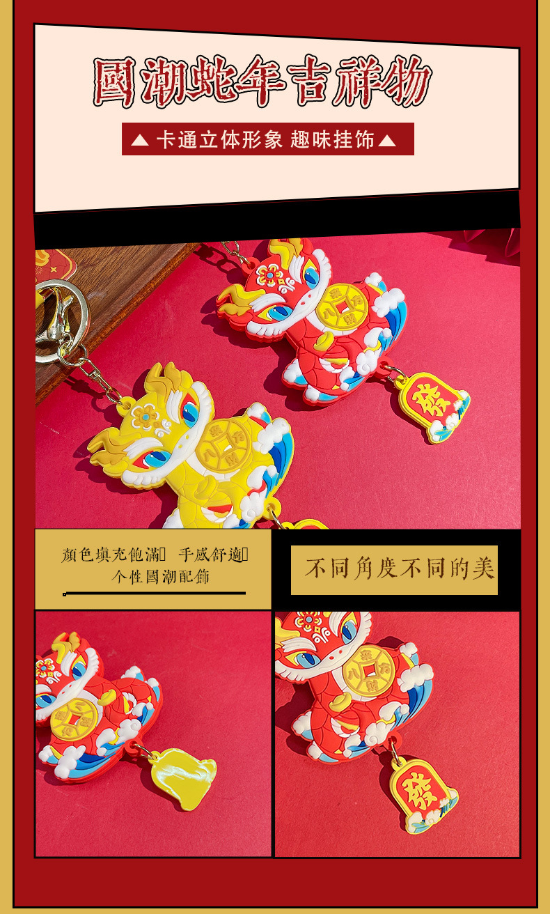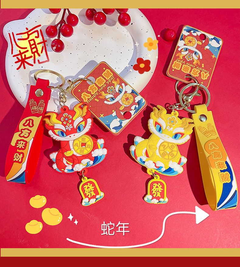 lion dance ji snake keychain-red