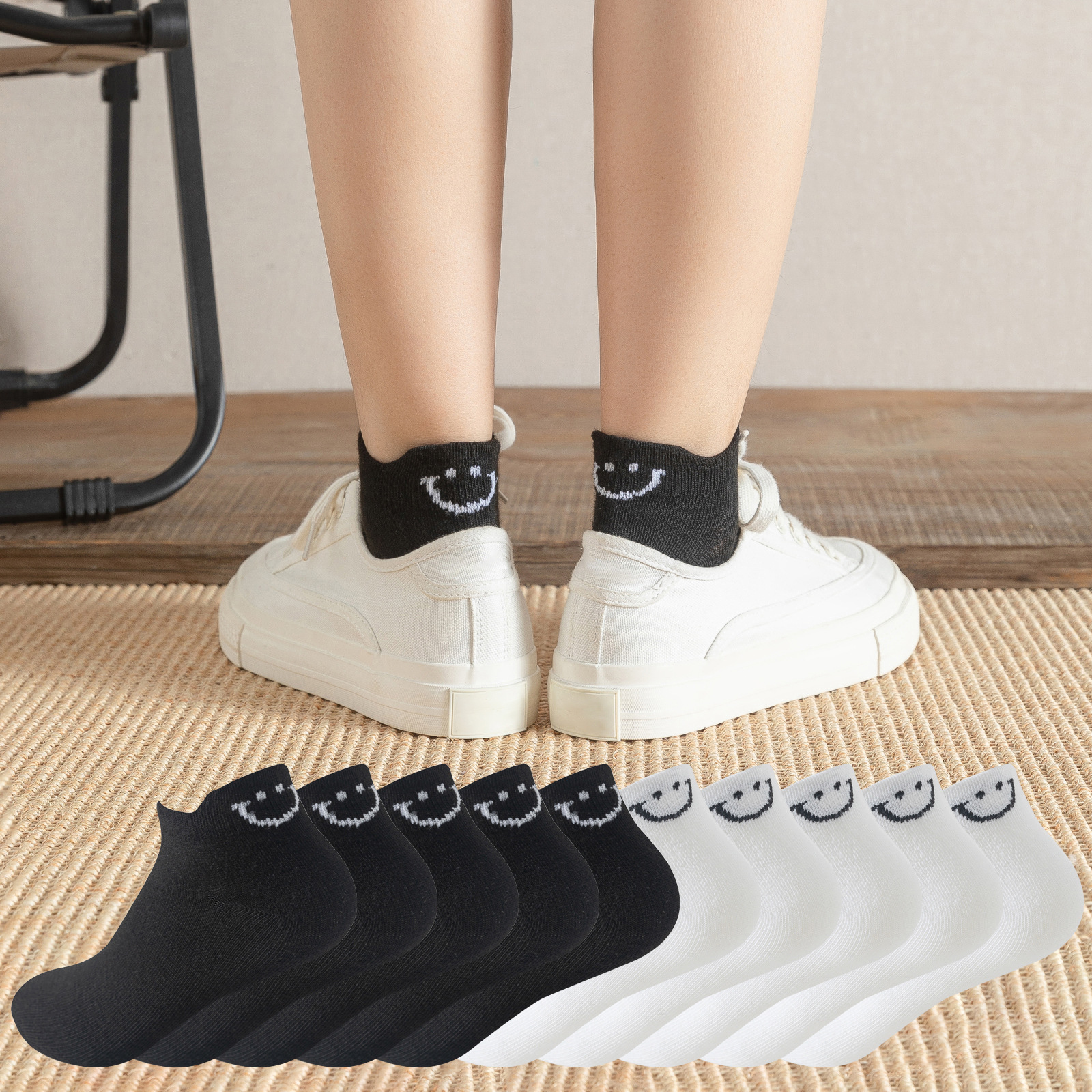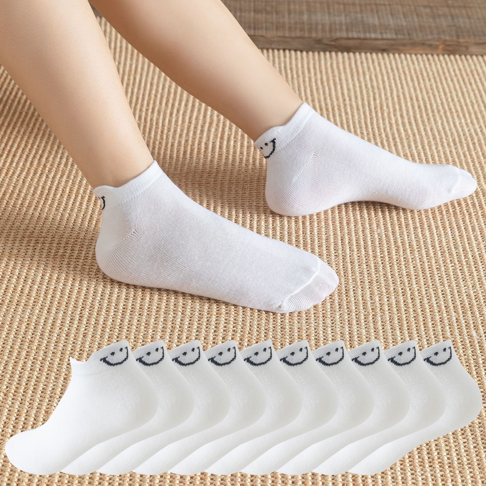 smiley socks white