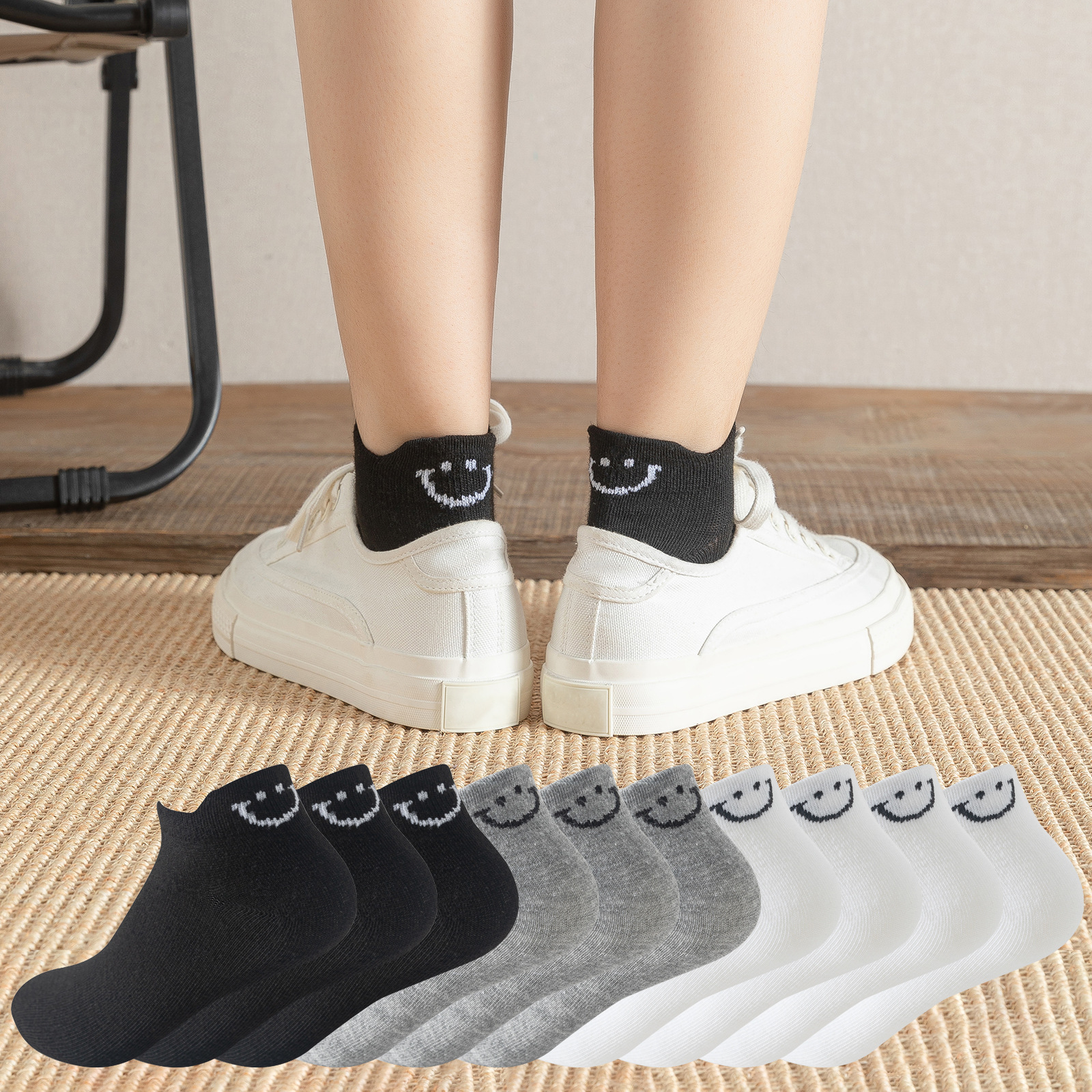 smiley socks gray