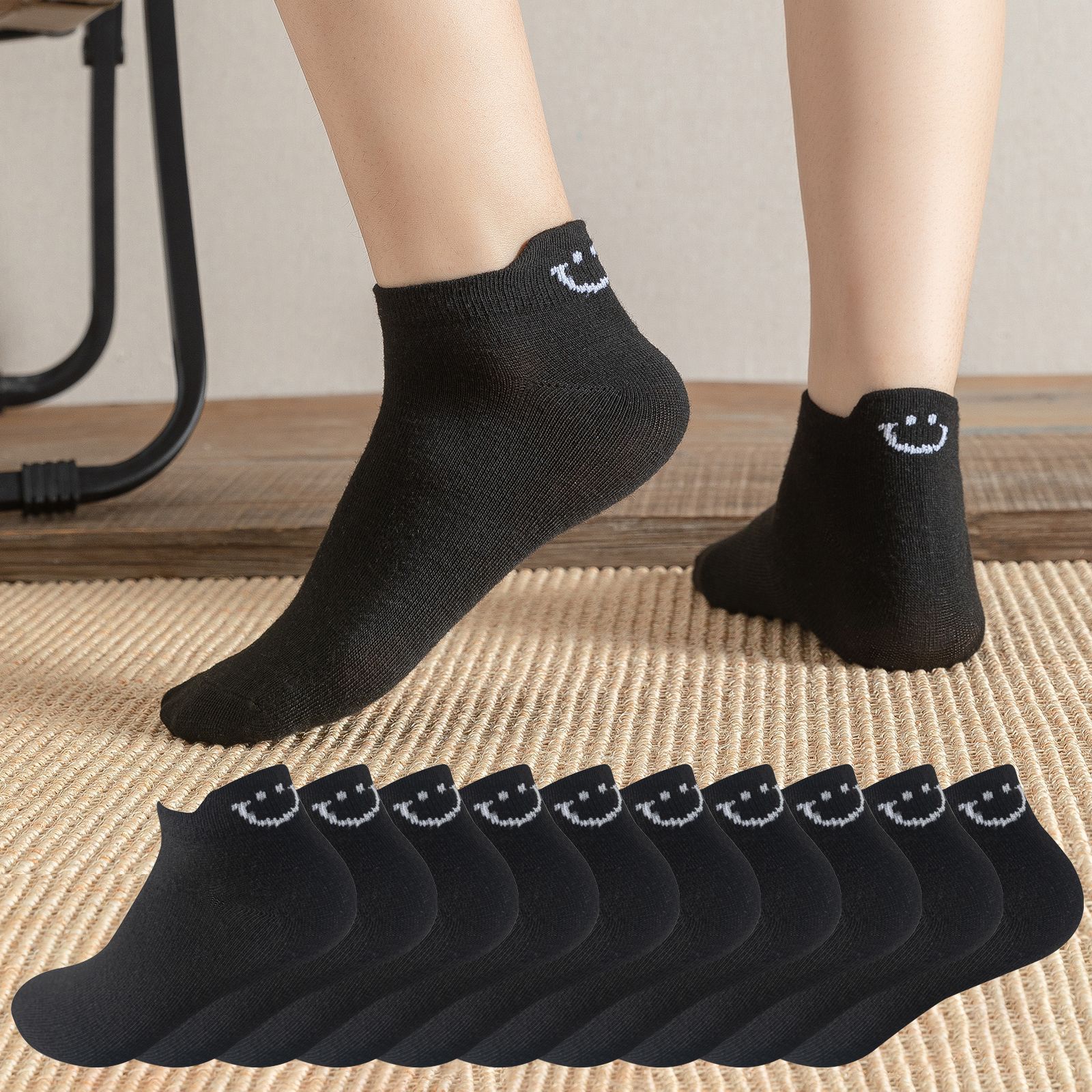 smiley face black socks