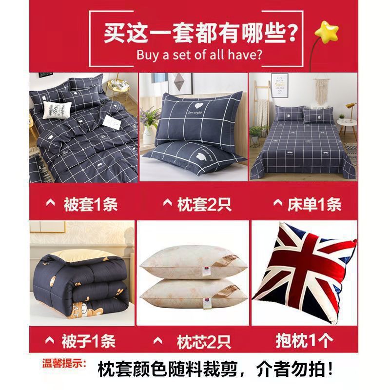 | 0.9/1.2 bed six-piece set (bed sheet + quilt cover + pillowcase +3.00kg quilt + pillow core + pillow) | CN¥ 102.5 | 42297 piece available |