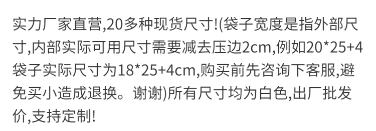 | 35*24+6 (85 horizontal bags) | CN¥ 34.56 | 99999 piece available |