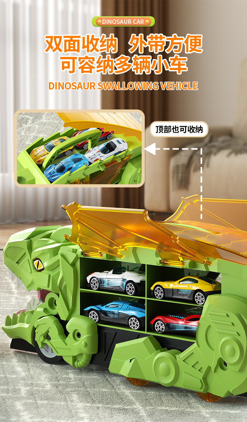 green dinosaur swallow car +4 metal car [chinese color box]]