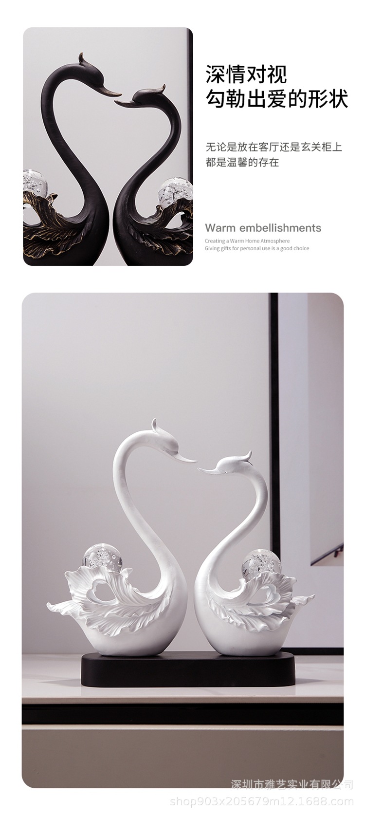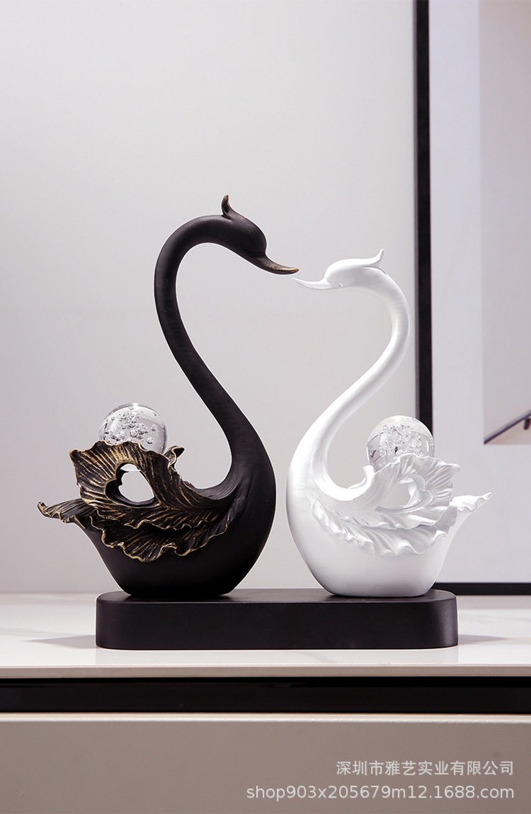[black and white] crystal ball couple swan (with seat)