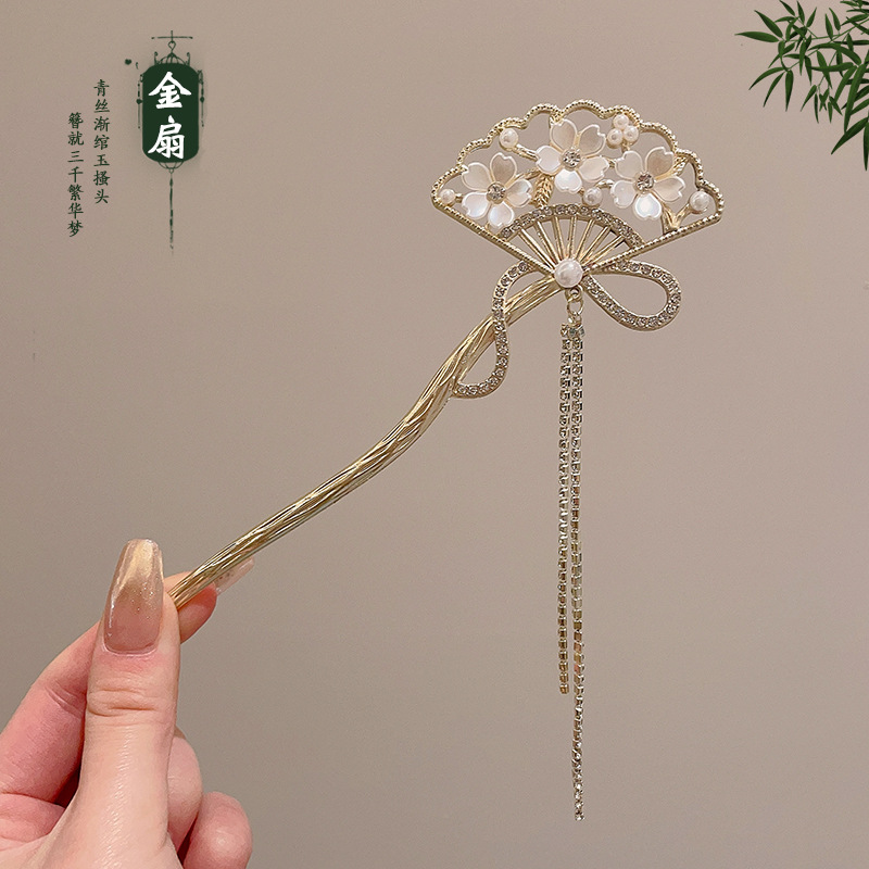 6# golden fan flower tassel hairpin
