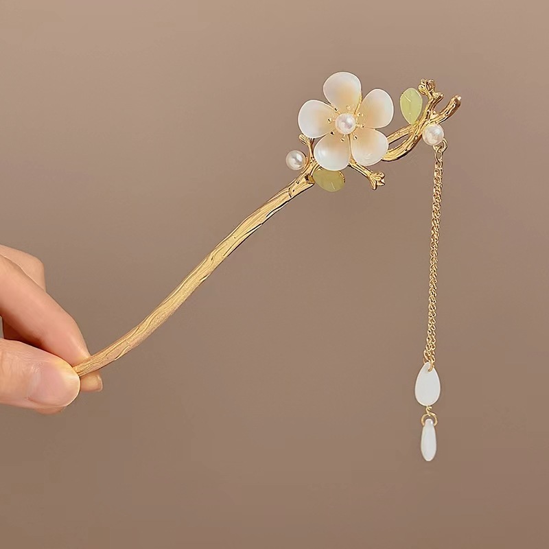 1# white flower pendant hairpin