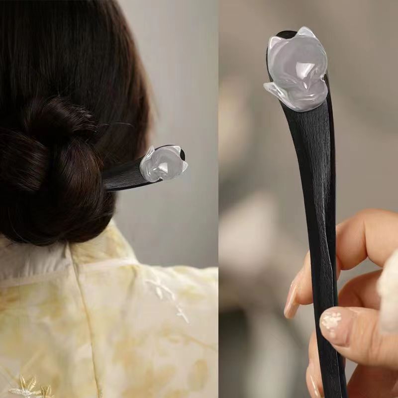 fox wooden hair clasp