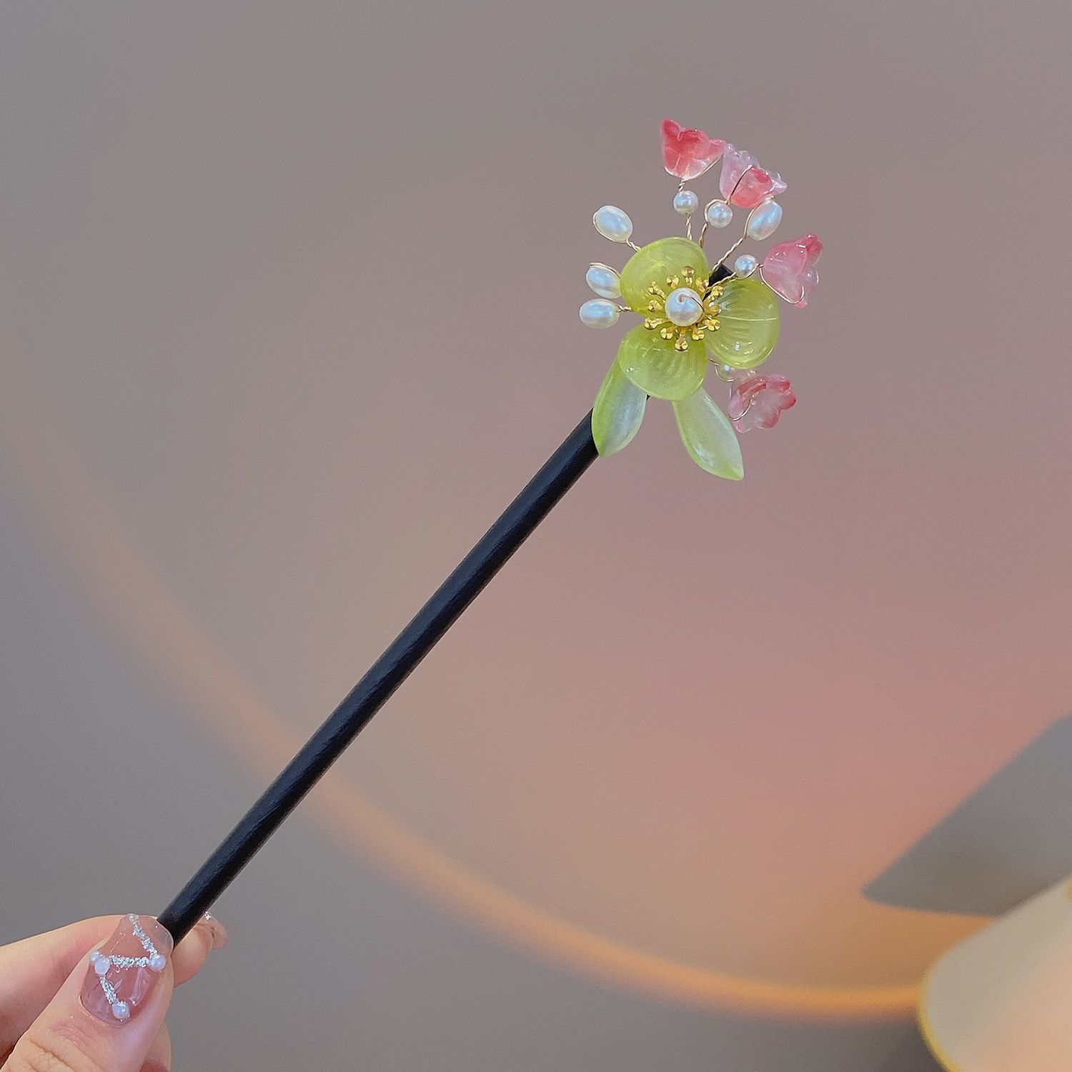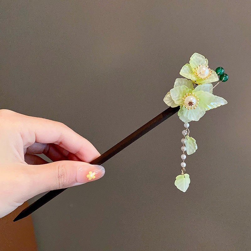 9# green pearl flower hairpin