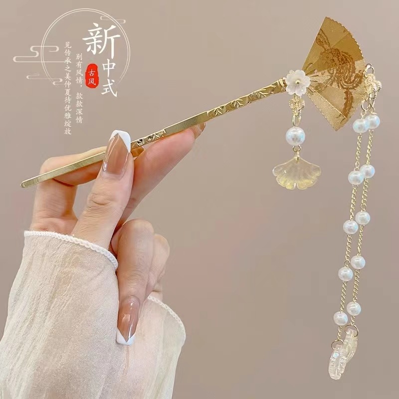 5# folding fan tassel hairpin