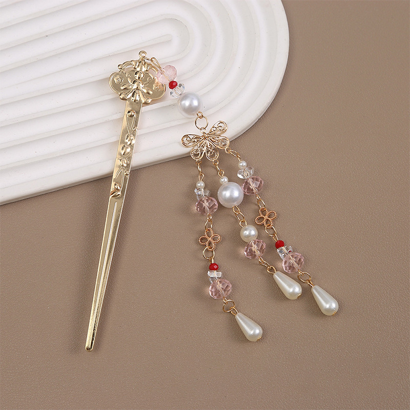 2# pink bead butterfly hairpin