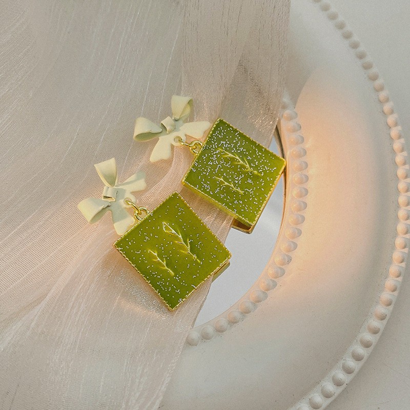 13# earrings-green bow