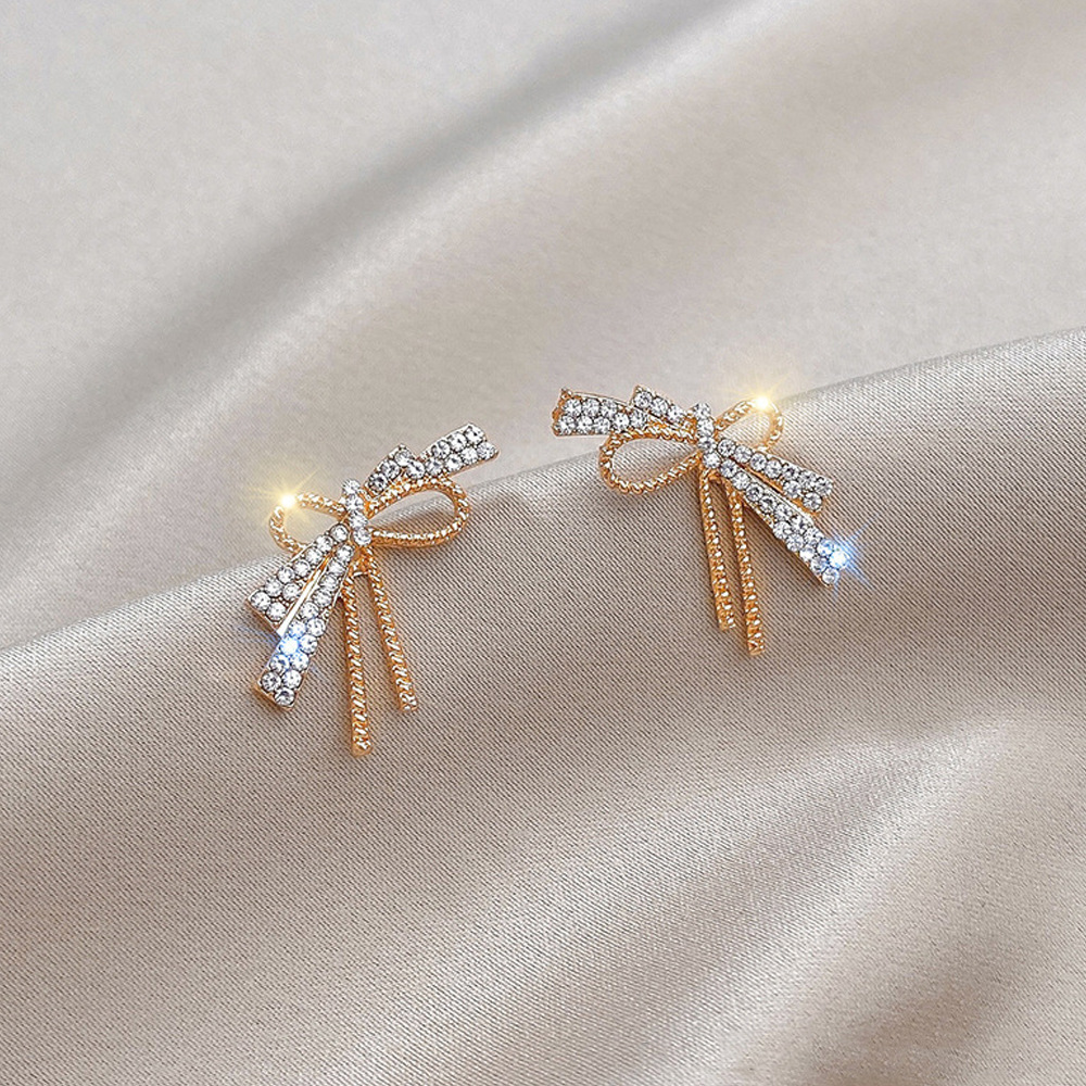 21# bow diamond stud earrings