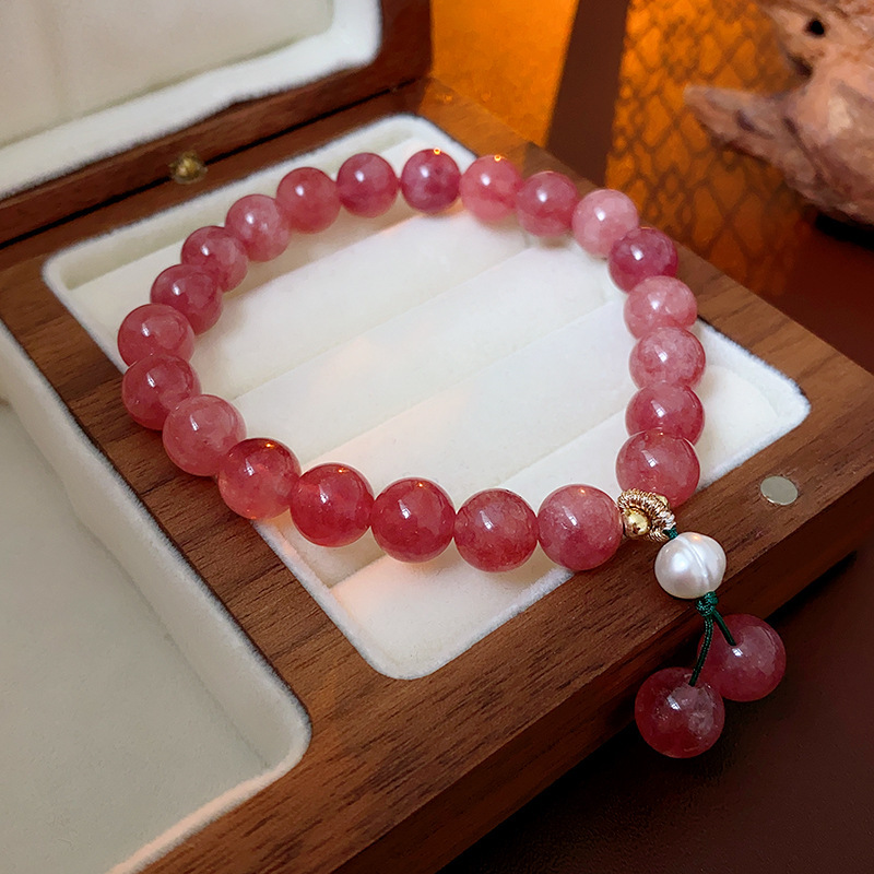 strawberry quartz crystal heart bracelet