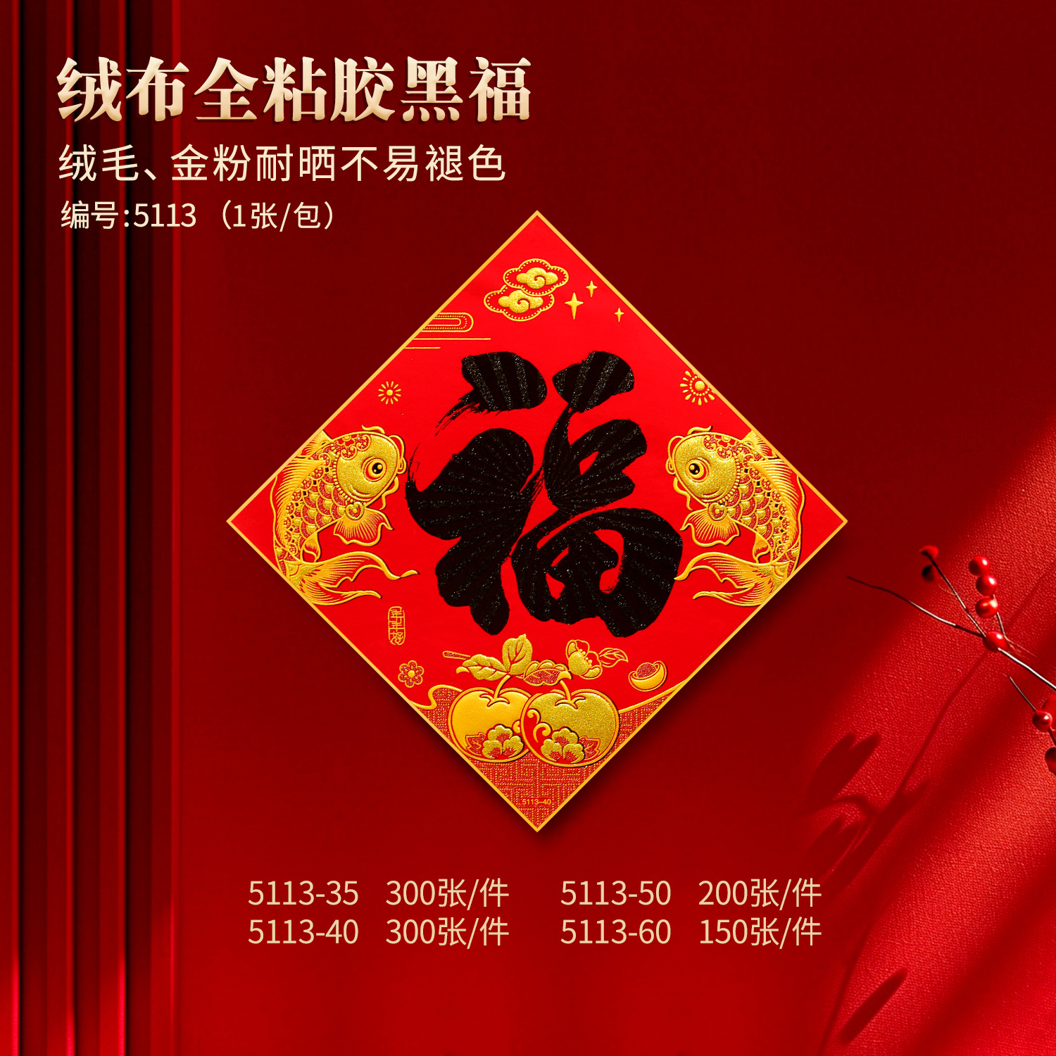 black word 35 fu word a piece of jiqing fish flannel gilding craft (34 * 34cm)