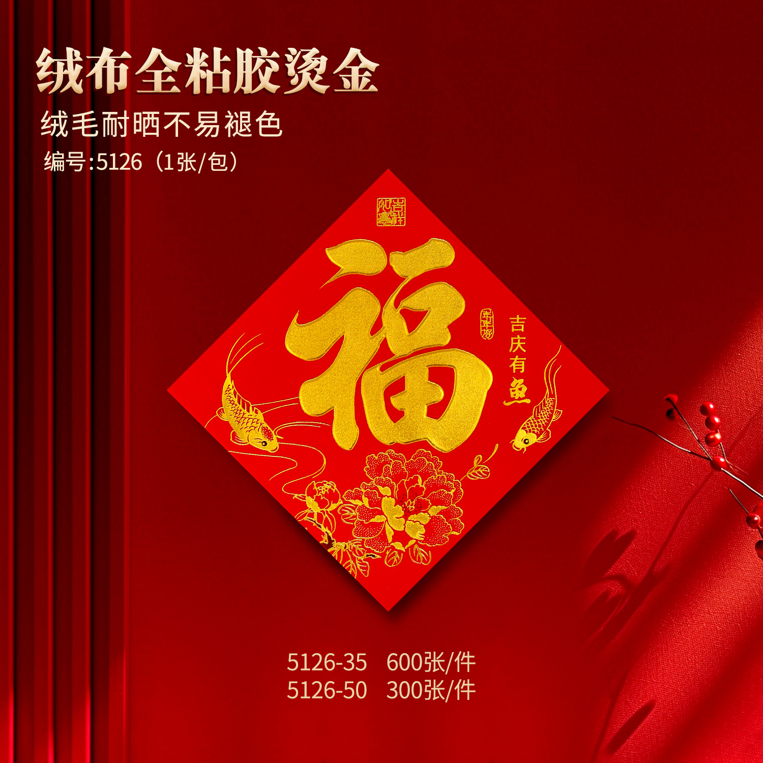 gold word 35 fu word a piece of jiqing fish flannel gilding craft (34 * 34cm)