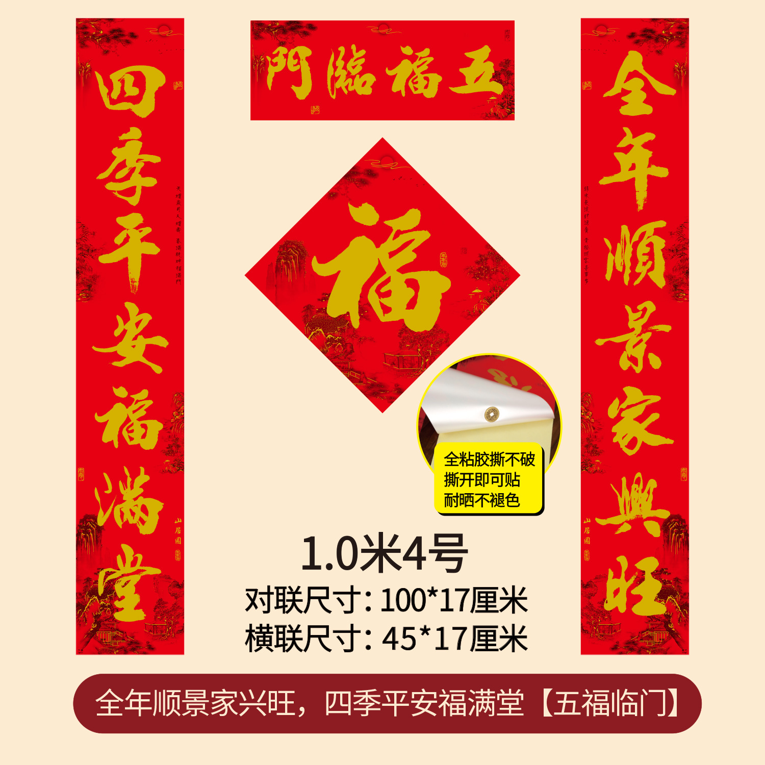 1.0m year round scenery homexw, four seasons peace fu mantang five blessings (real length 98 * 17cm)