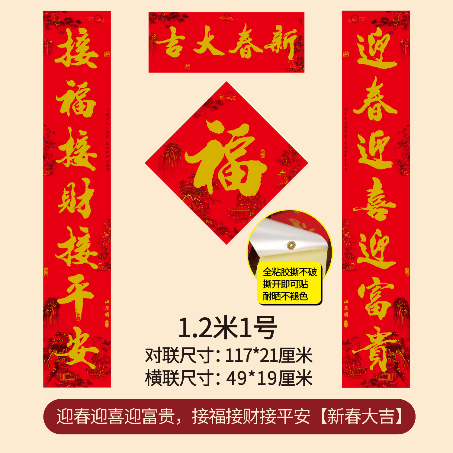 1.8m welcome the spring, welcome the wealth, receive the blessing, receive the wealth, and receive the happiness of the spring festival (real length 178 * 28cm)