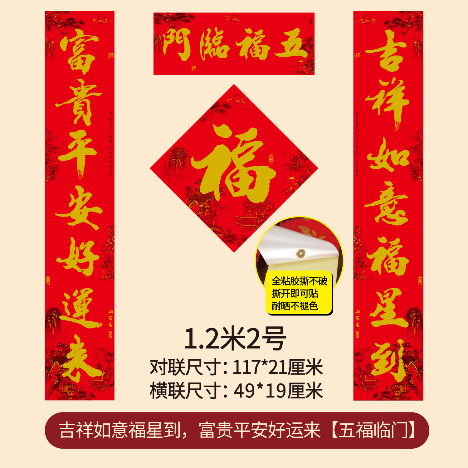 1.2m lucky lucky fortune, rich and safe good luck, five blessings (actual length 98 * 17cm)