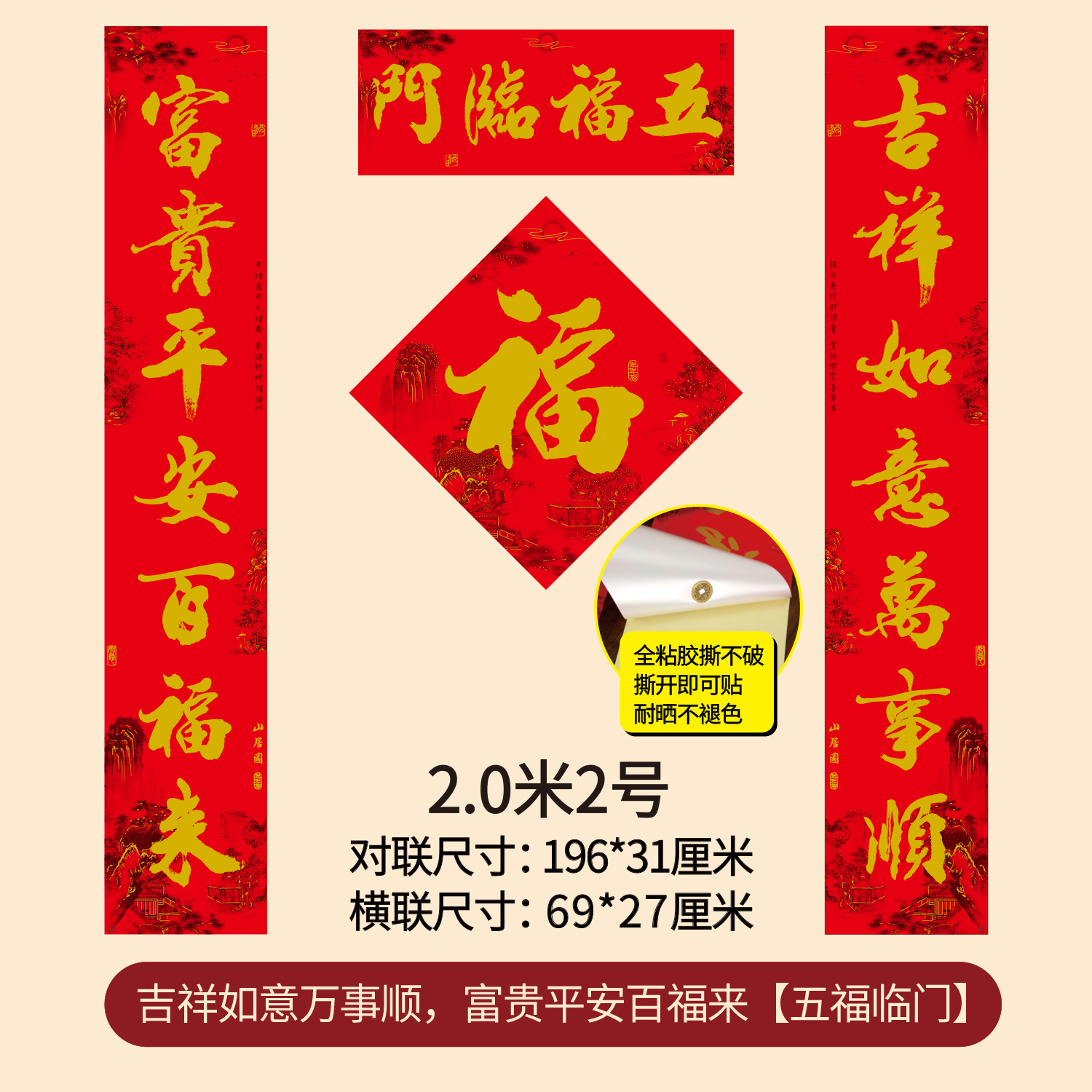 2.0m fuwang, fortune, prosperity, prosperity, prosperity, prosperity and good luck (real length 198 * 32cm)
