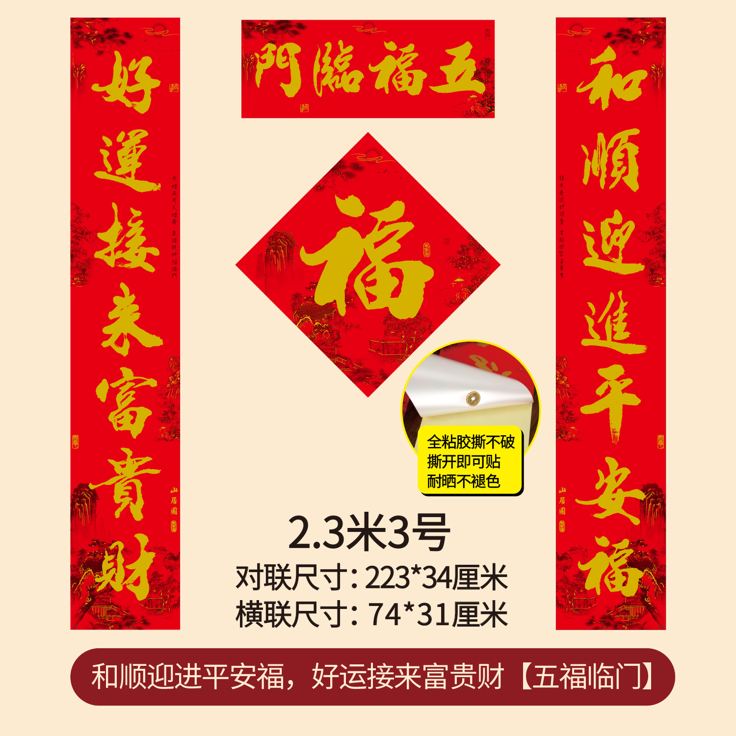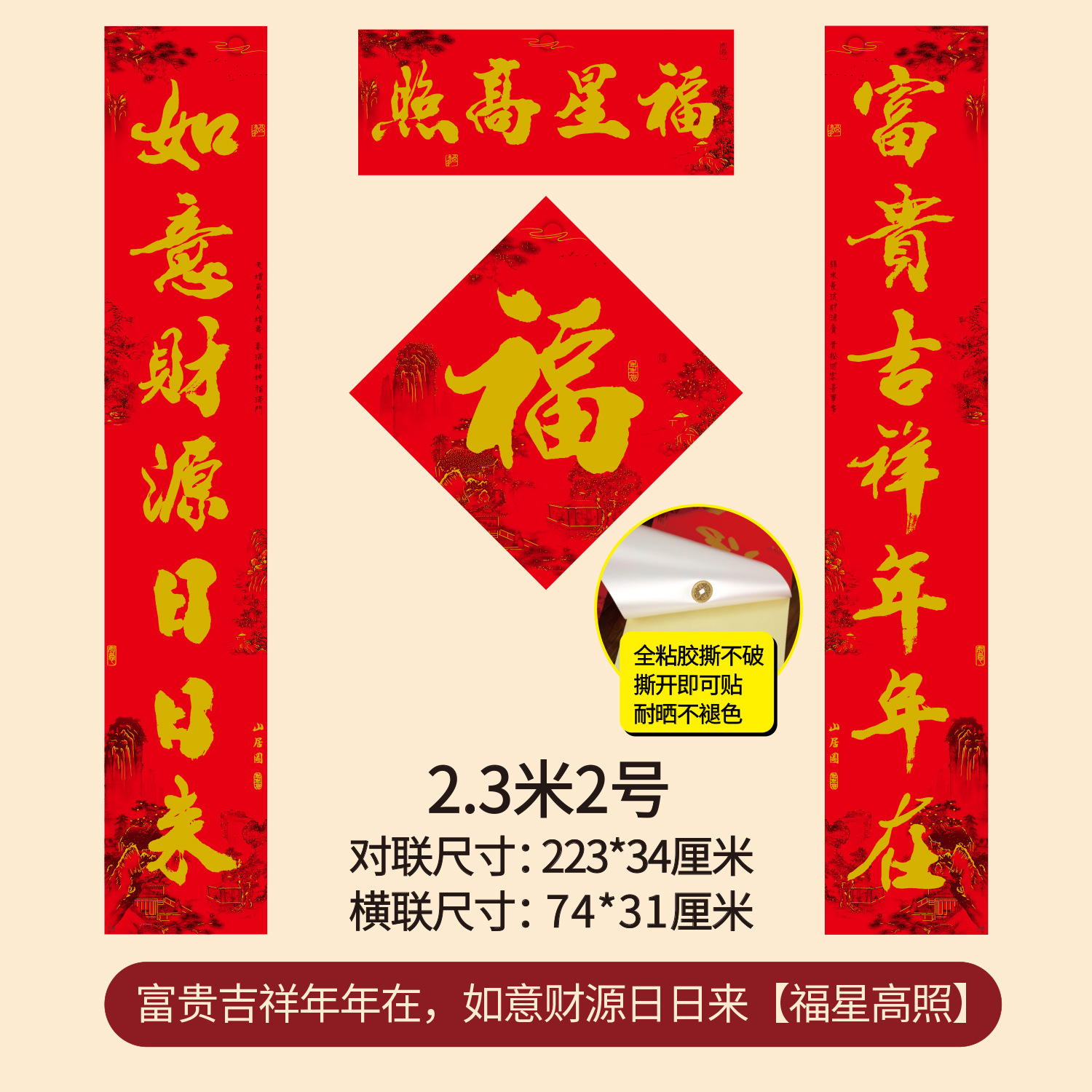 2.3m welcome to the spring, pick up fuqing and be safe, make a fortune, happy reunion and all the best (real length 225 * 34cm)