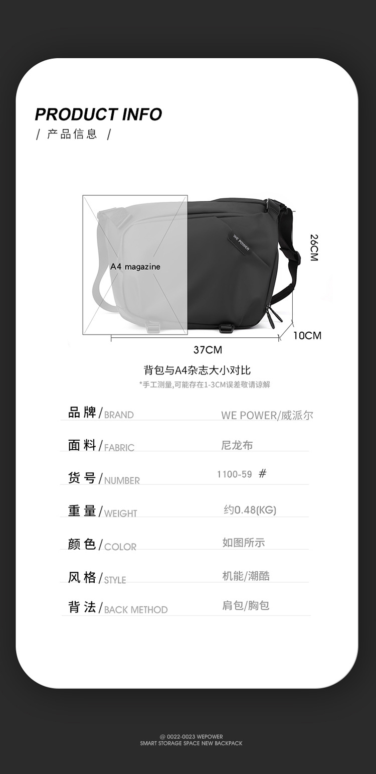 【Product Model】1100-59# Chest Bag, Shoulder, Crossbody Bag