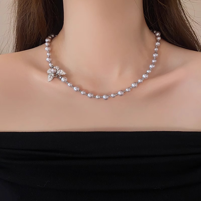 heather gray shijia pearl butterfly necklace