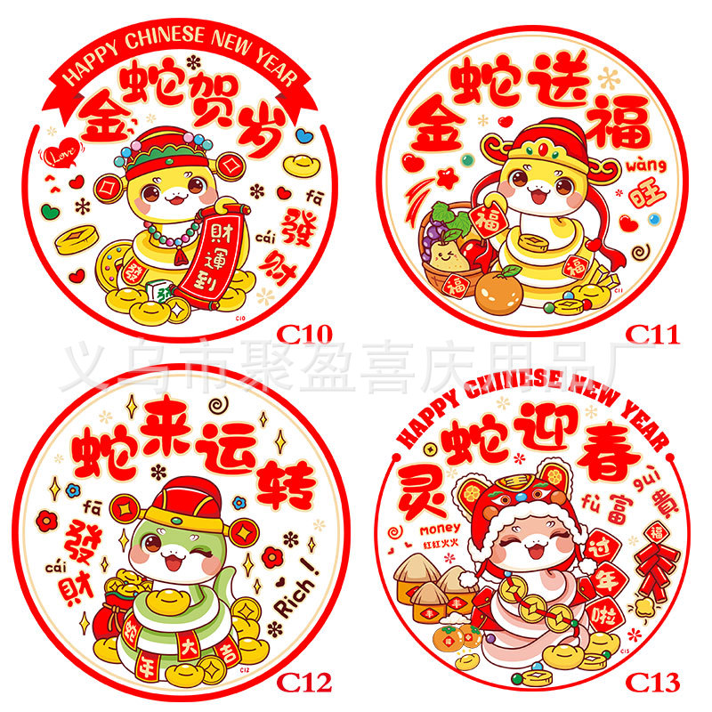 30# colorful zodiac static window flower-gold snake new year