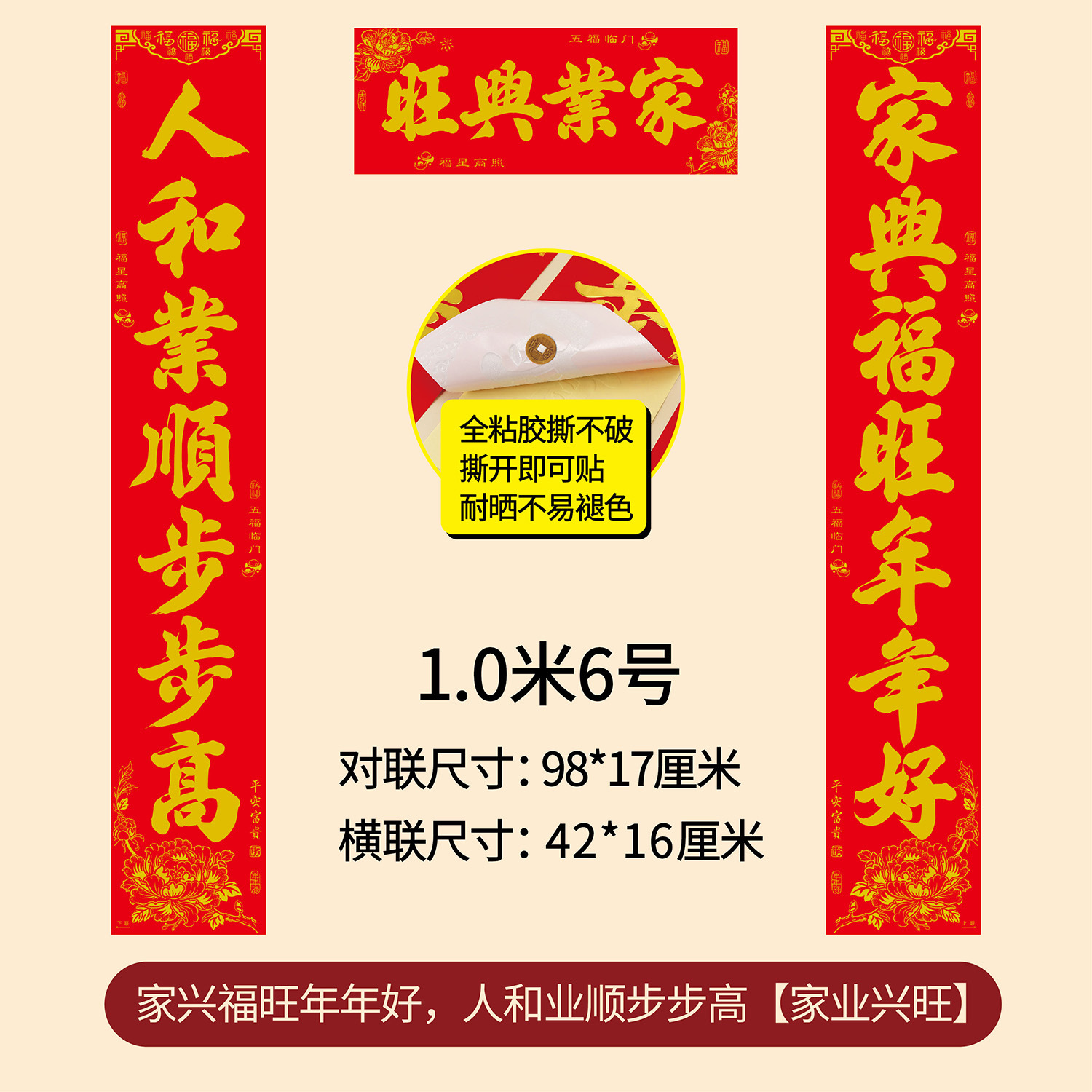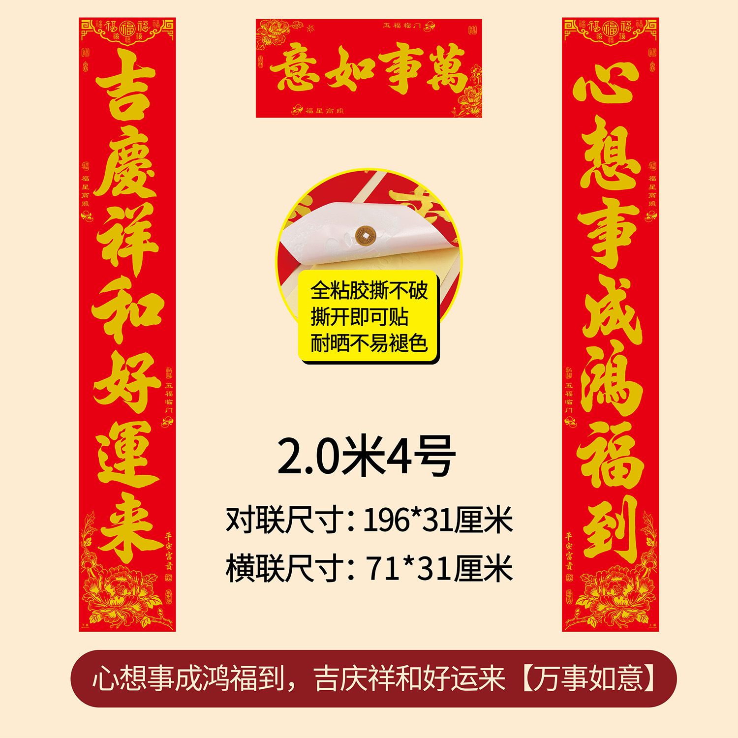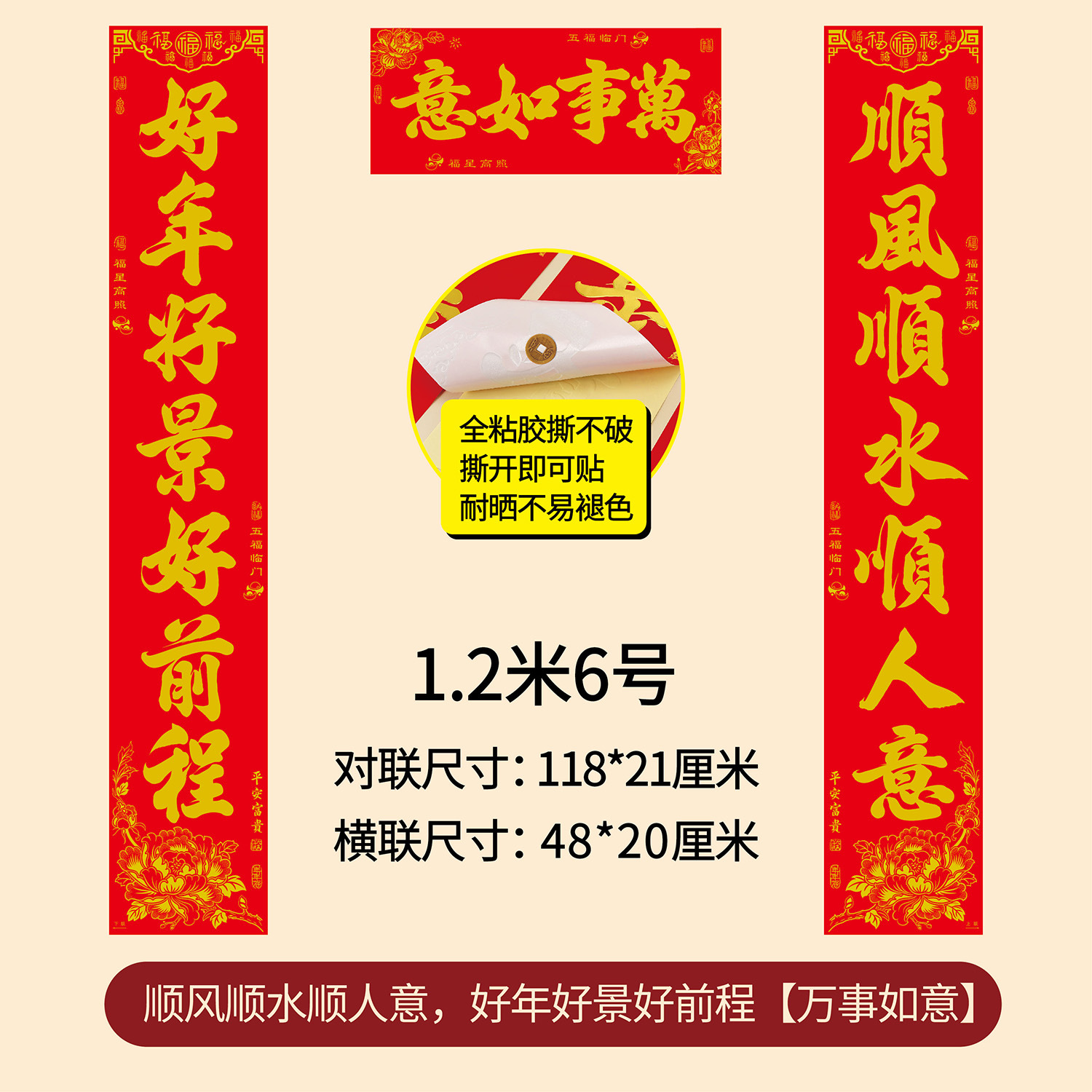 1.5m good year good scenery ping an fu, happy and happy year five blessings (real length 148 * 24cm)