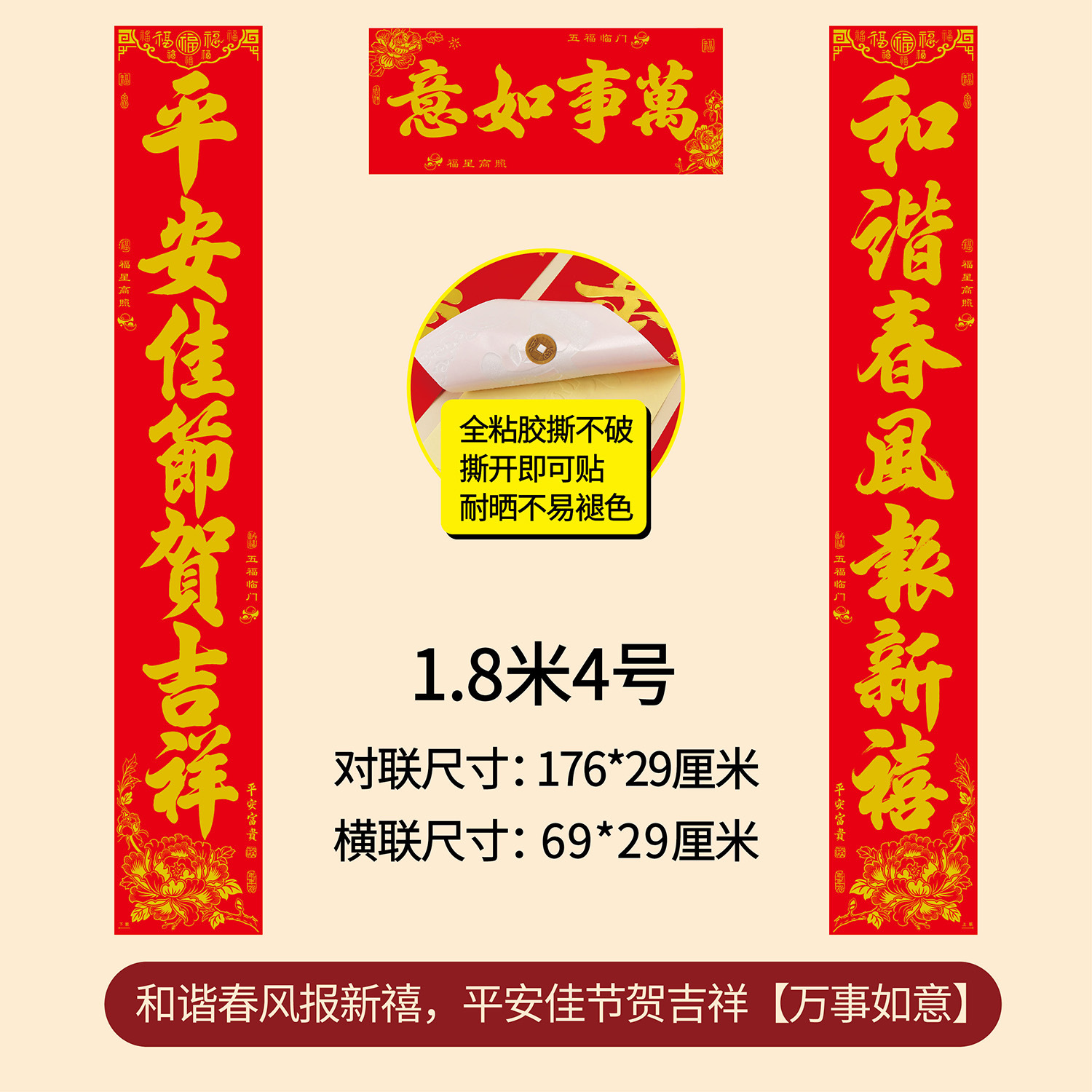 1.8m harmonious spring breeze report new year, happy luck and good luck during the safe festival (real length 176 * 29cm)